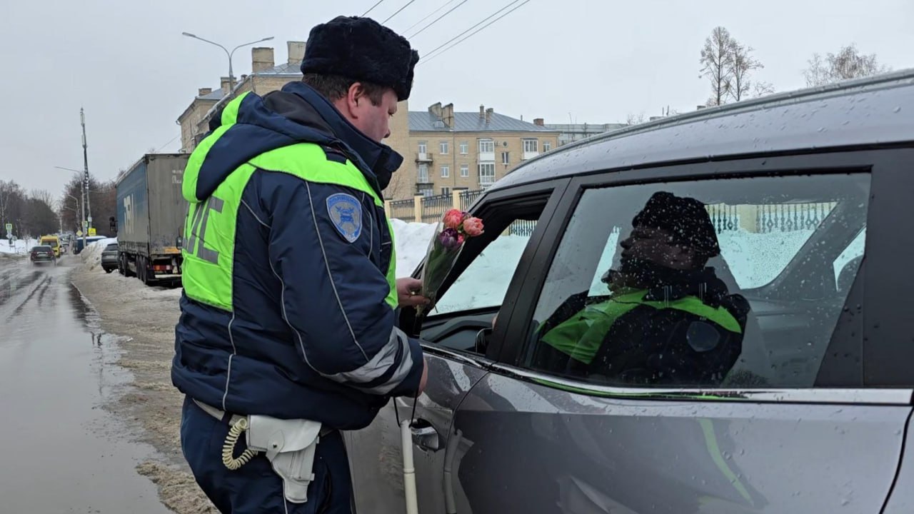 Цветы вместо протоколов: инспекторы ГАИ поздравили автоледи с наступающим праздником.