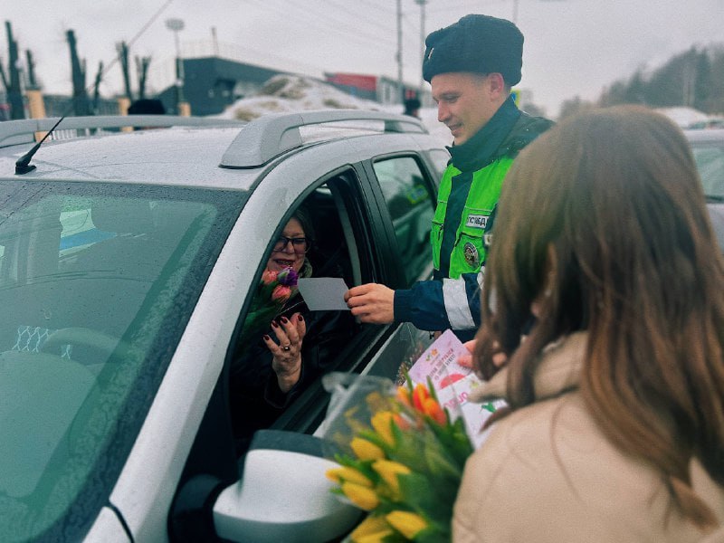 Автоинспекторы преподносили дамам цветы, поздравляли их с приближающимся праздником, передавали праздничные открытки и произносили теплые пожелания. Одновременно с приятными сюрпризами женщины получали напоминания о важности соблюдения ПДД и уважения друг к другу участников дорожного движения.