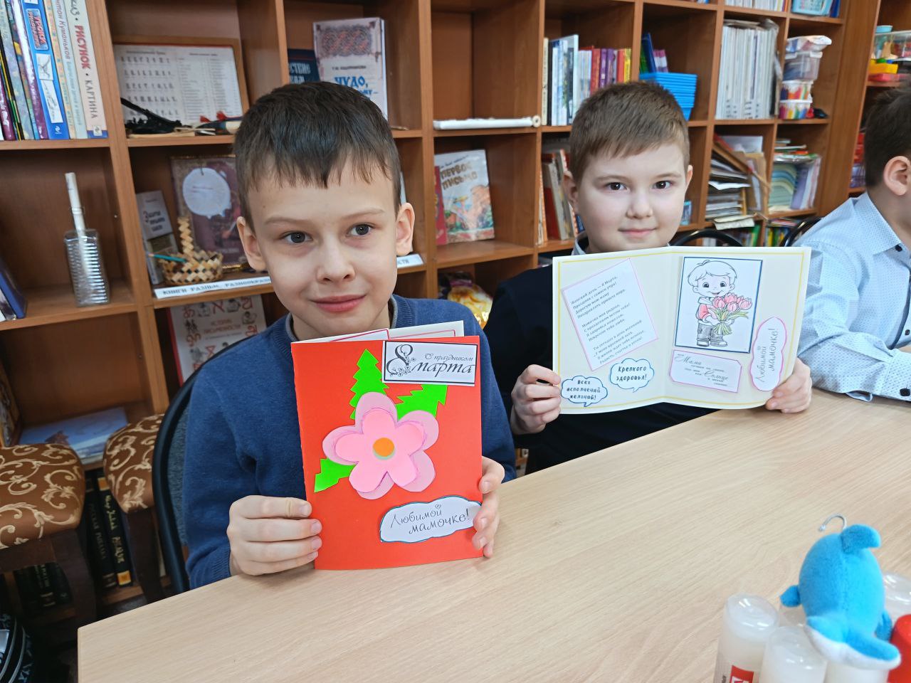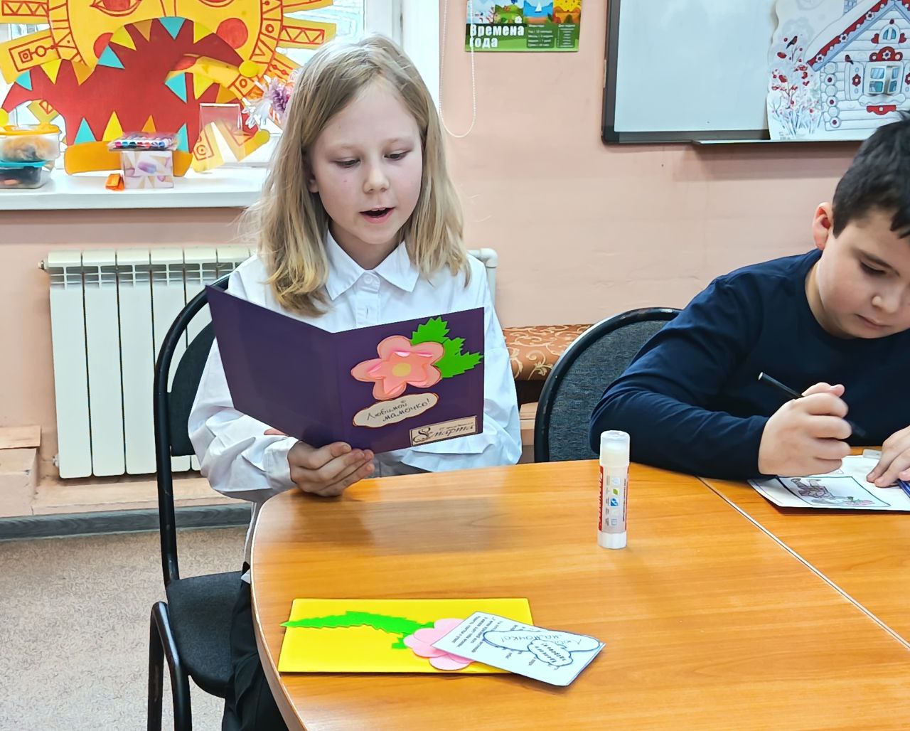 Чудесные открытки были украшены цветочным орнаментом и добрыми пожеланиями любимым мамам. Каждый старался сделать подарок ярким и неповторимым, прилагая максимум усилий, свою фантазию и вдохновение.