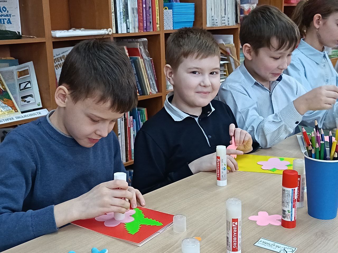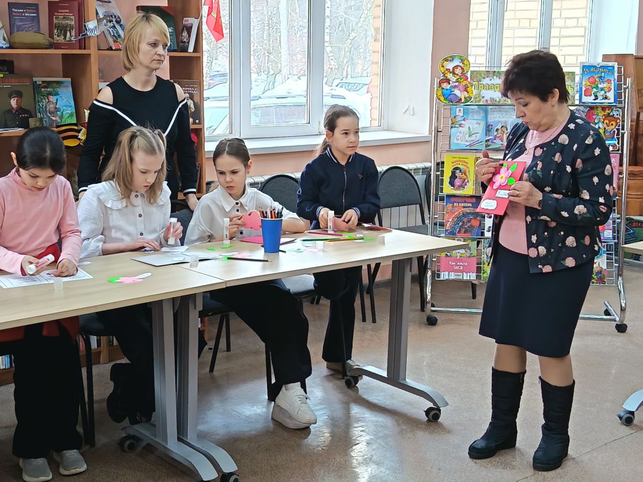 Тематический мастер-класс «Весеннее вдохновение», посвящённый Международному женскому дню, провела для учеников начальной школы педагог Центра развития творчества детей и юношества, руководитель творческого объединения «Мастерица» Н.А.Соловьева 5 марта.