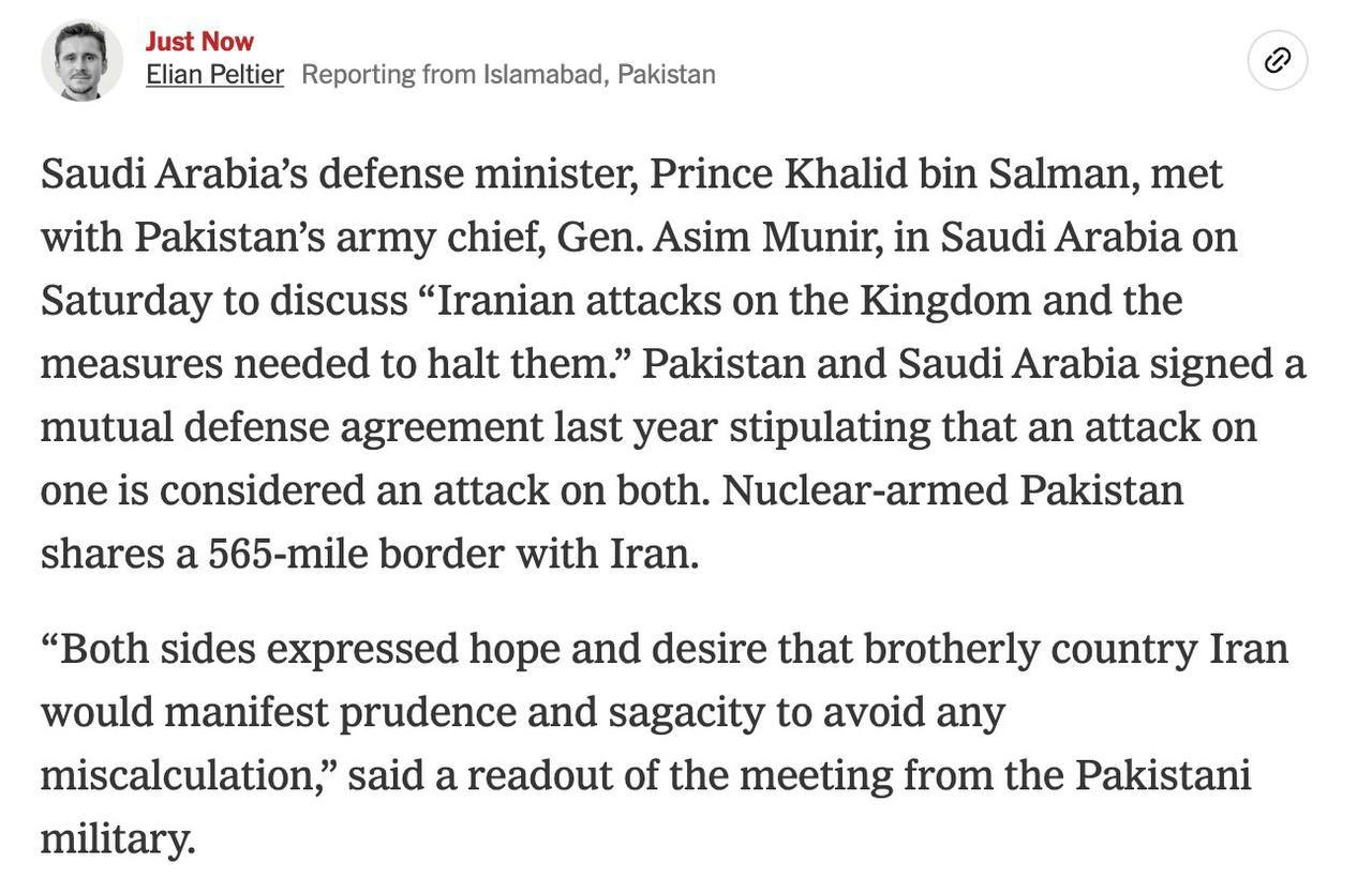 Пакистан и Саудовская Аравия заявляют, что могут принять "меры по прекращению" иранских атак на Королевство Саудовская Аравия.