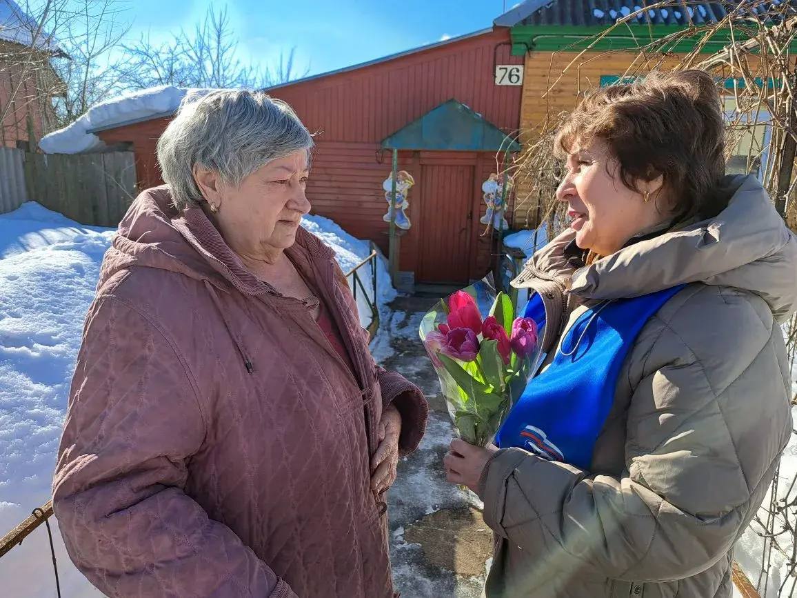 Депутаты и активисты партии дарят цветы, уделяют время живому общению, узнают, какая дополнительная помощь необходима.