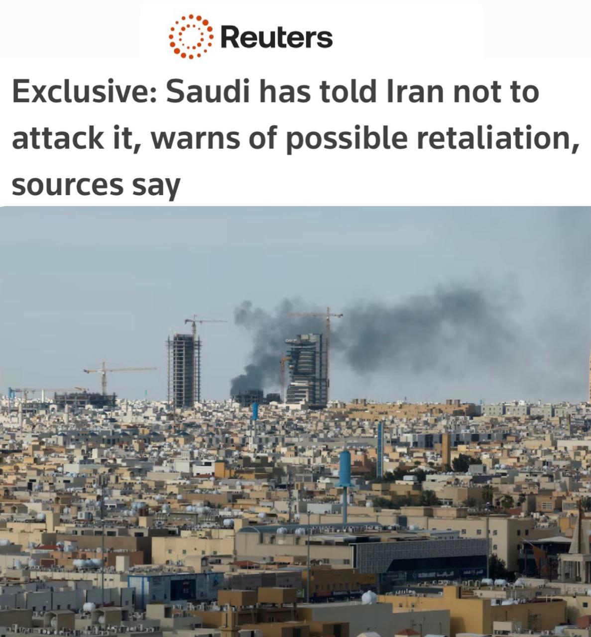 «Саудовская Аравия предупредила Иран не наносить по ней удары и заявила о возможной ответной реакции»: Эр-Рияд может разрешить США использовать свои базы, если Иран нанесёт удары по территории королевства.