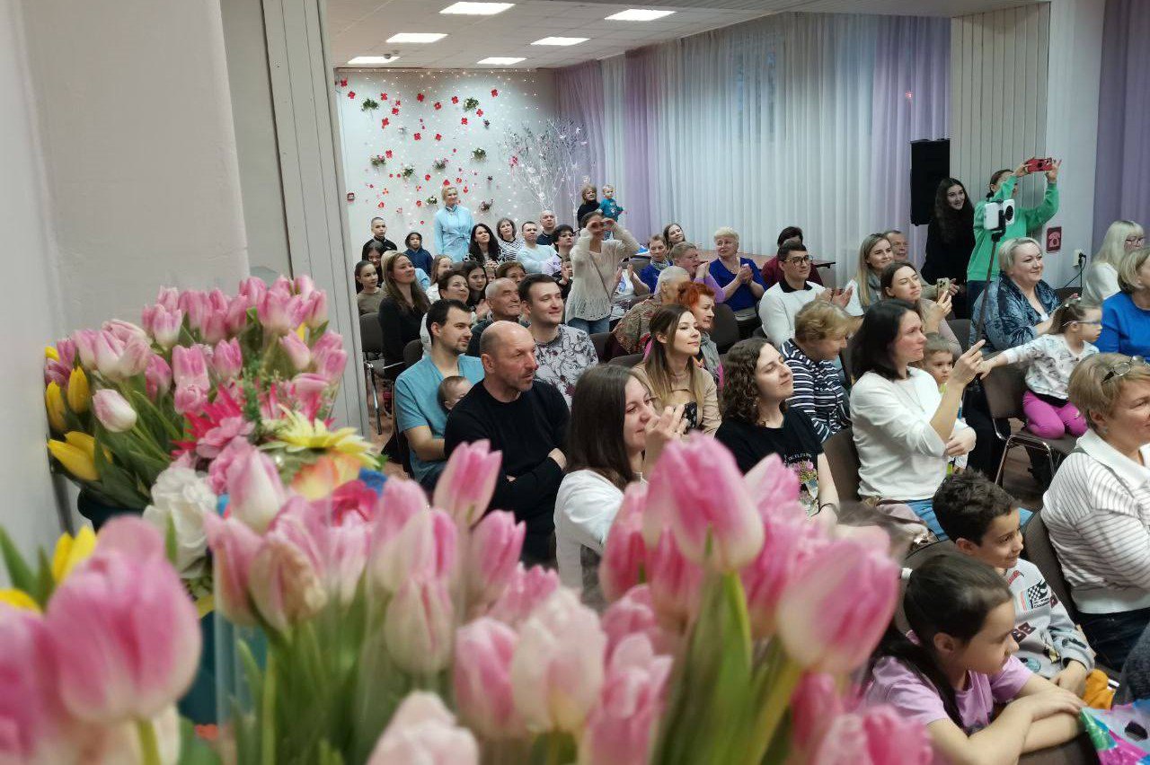 Концерт начался с теплых поздравлений. Творческие коллективы порадовали зрителей музыкальными и танцевальными номерами, которые встречали аплодисментами. Кульминацией вечера стало выступление кавер-группы. Гости улыбались, подпевали и танцевали. На прощание каждая женщина получила весенний букет.