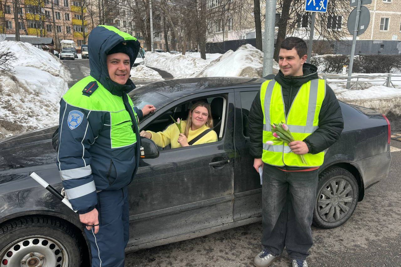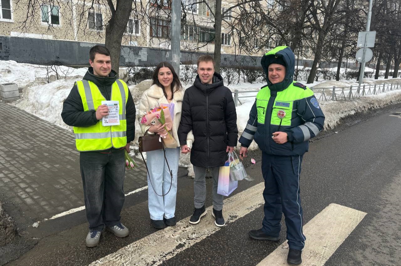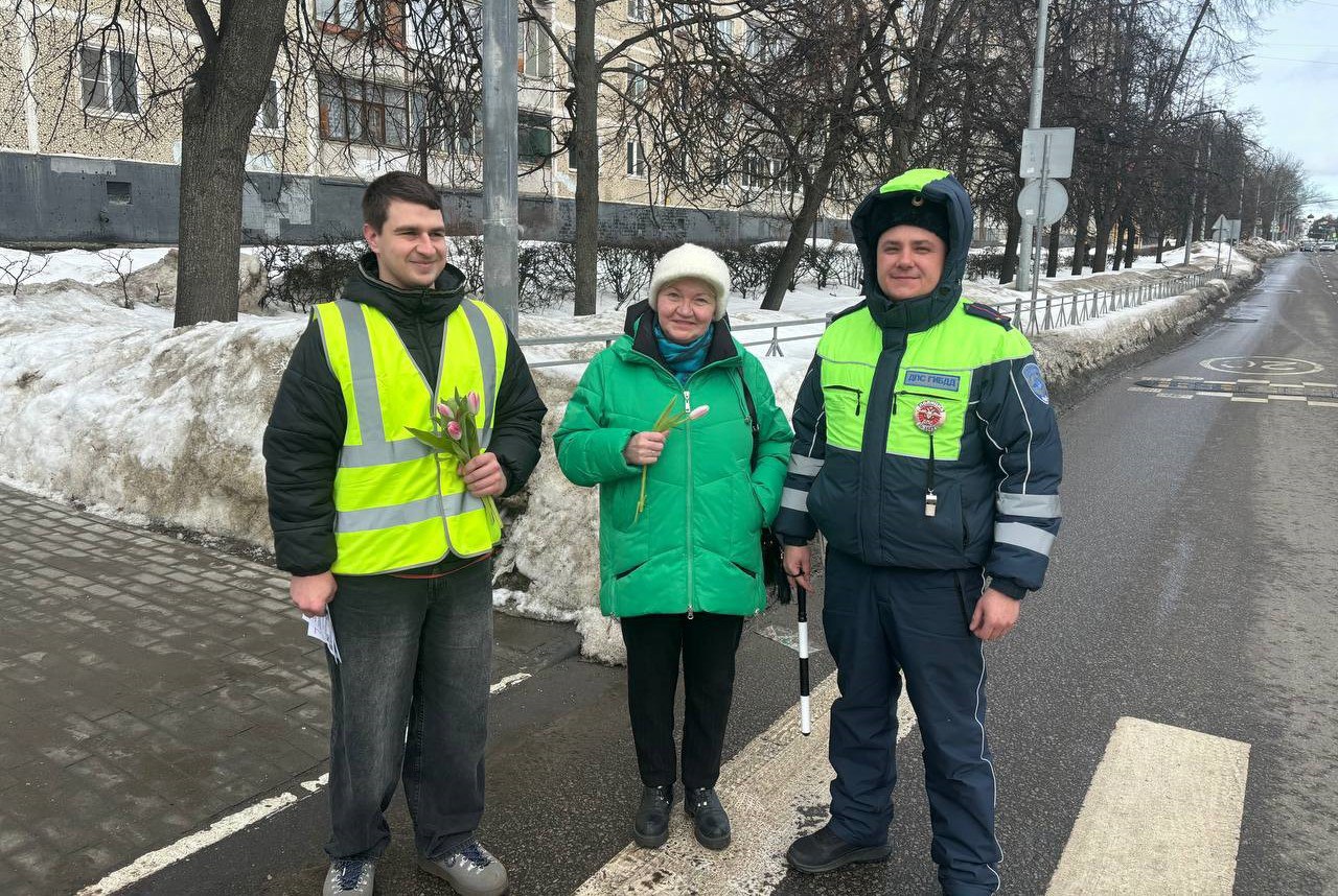Также цветы и благодарности получили женщины-пешеходы. Им напомнили о важности соблюдения правил дорожного движения и о необходимости быть внимательными на дороге.