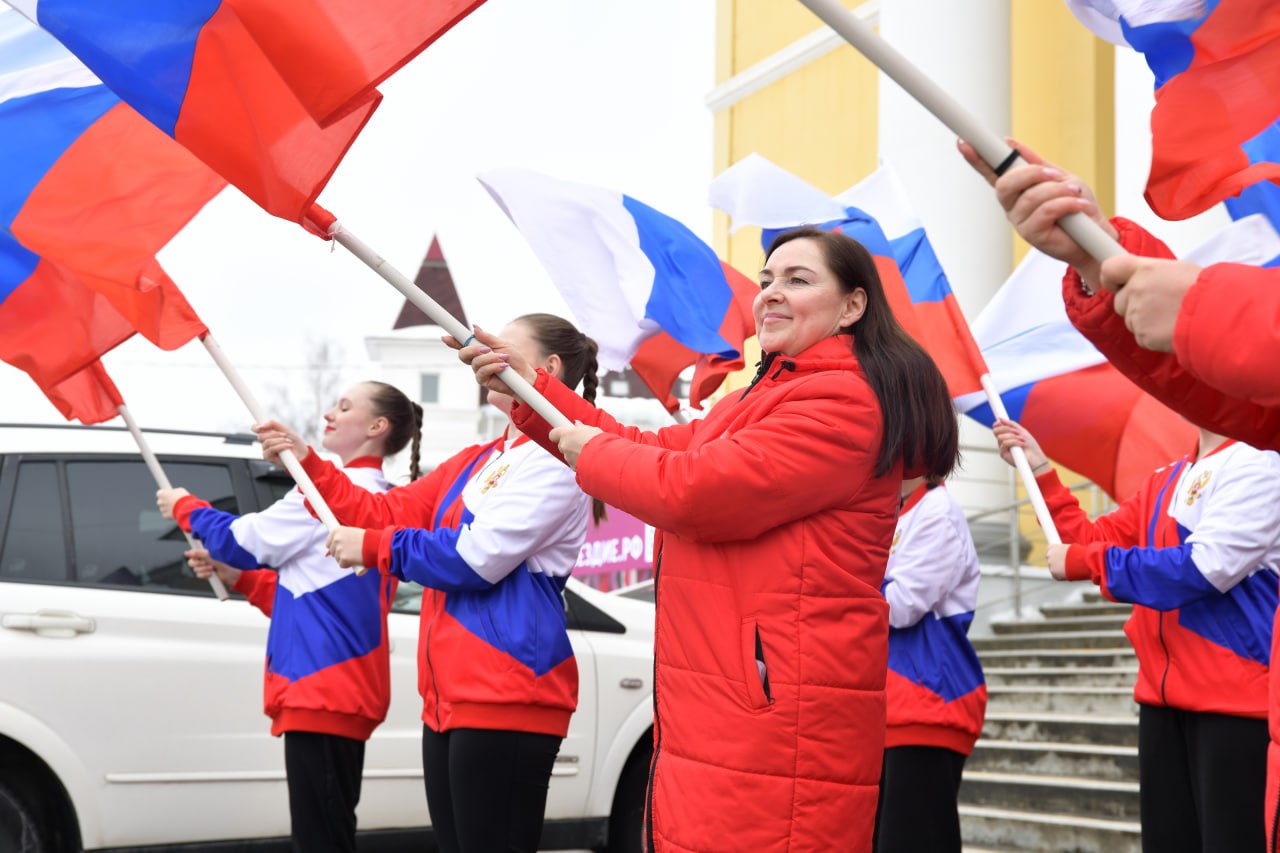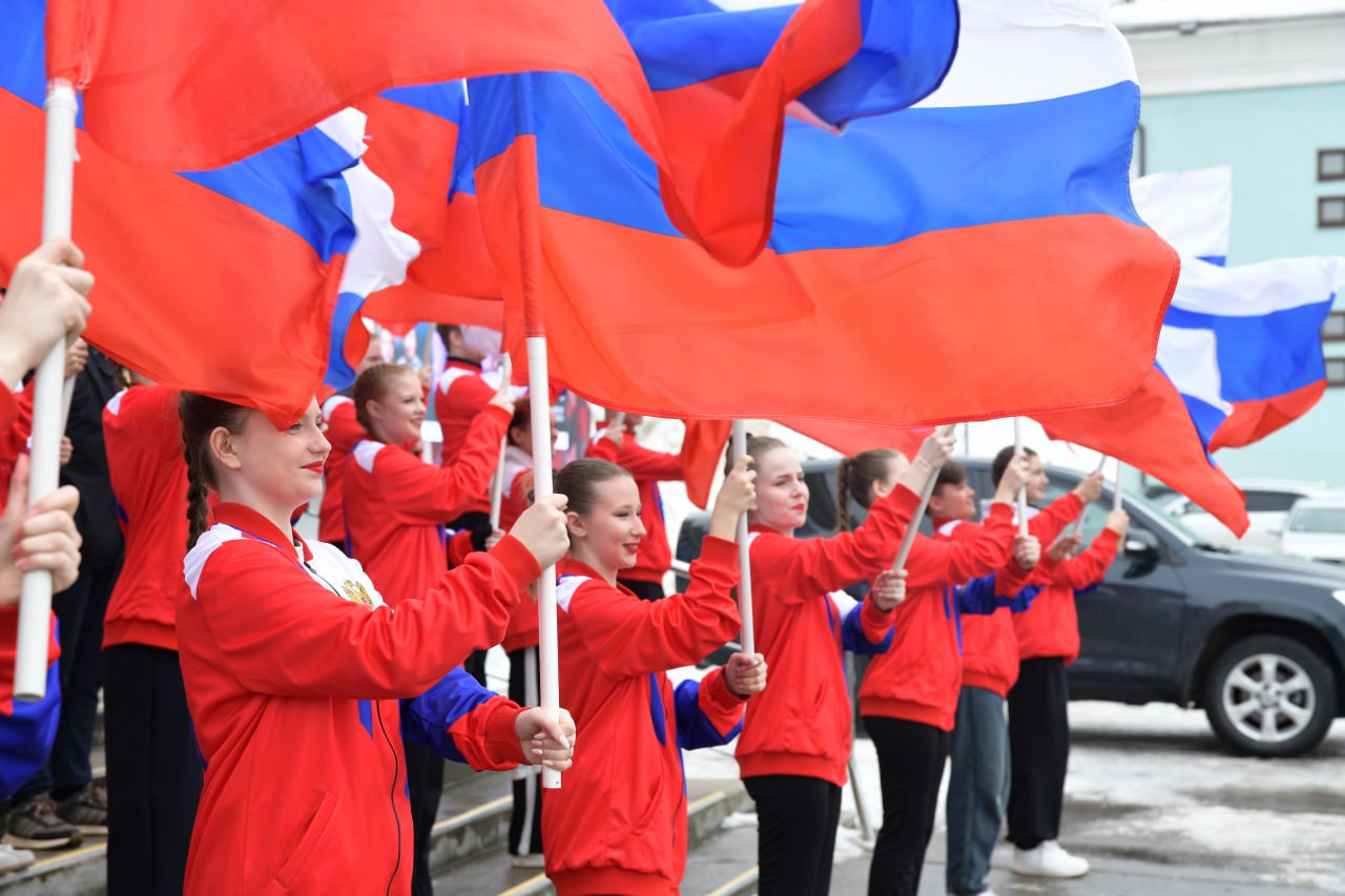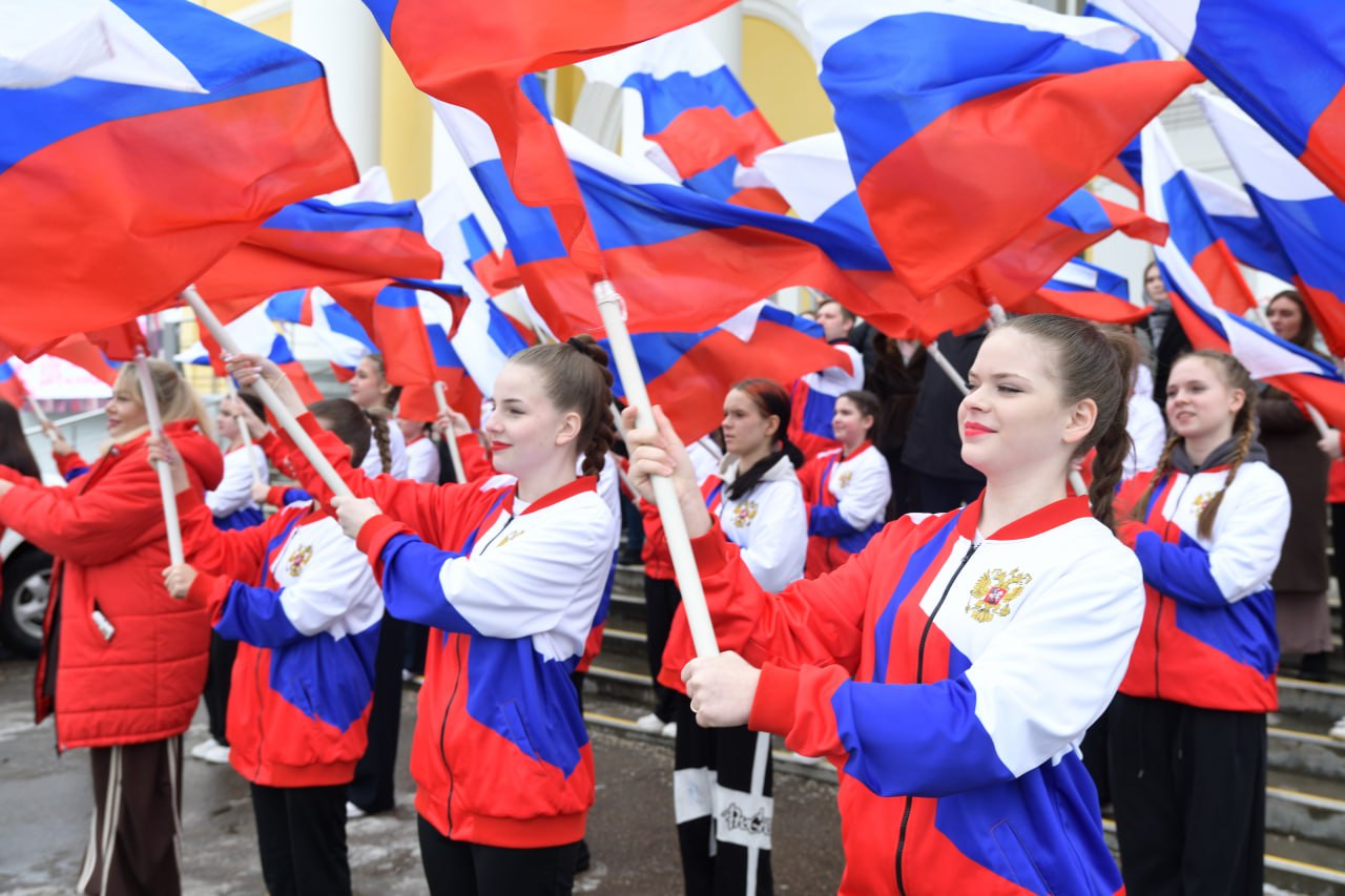 Акция, приуроченная к Международному женскому дню, объединила горожан у Центрального дворца культуры «Созвездие». Участники развернули флаги и исполнили музыкальные композиции, символизирующие единство и наступление весны. Присоединиться к событию мог каждый желающий.