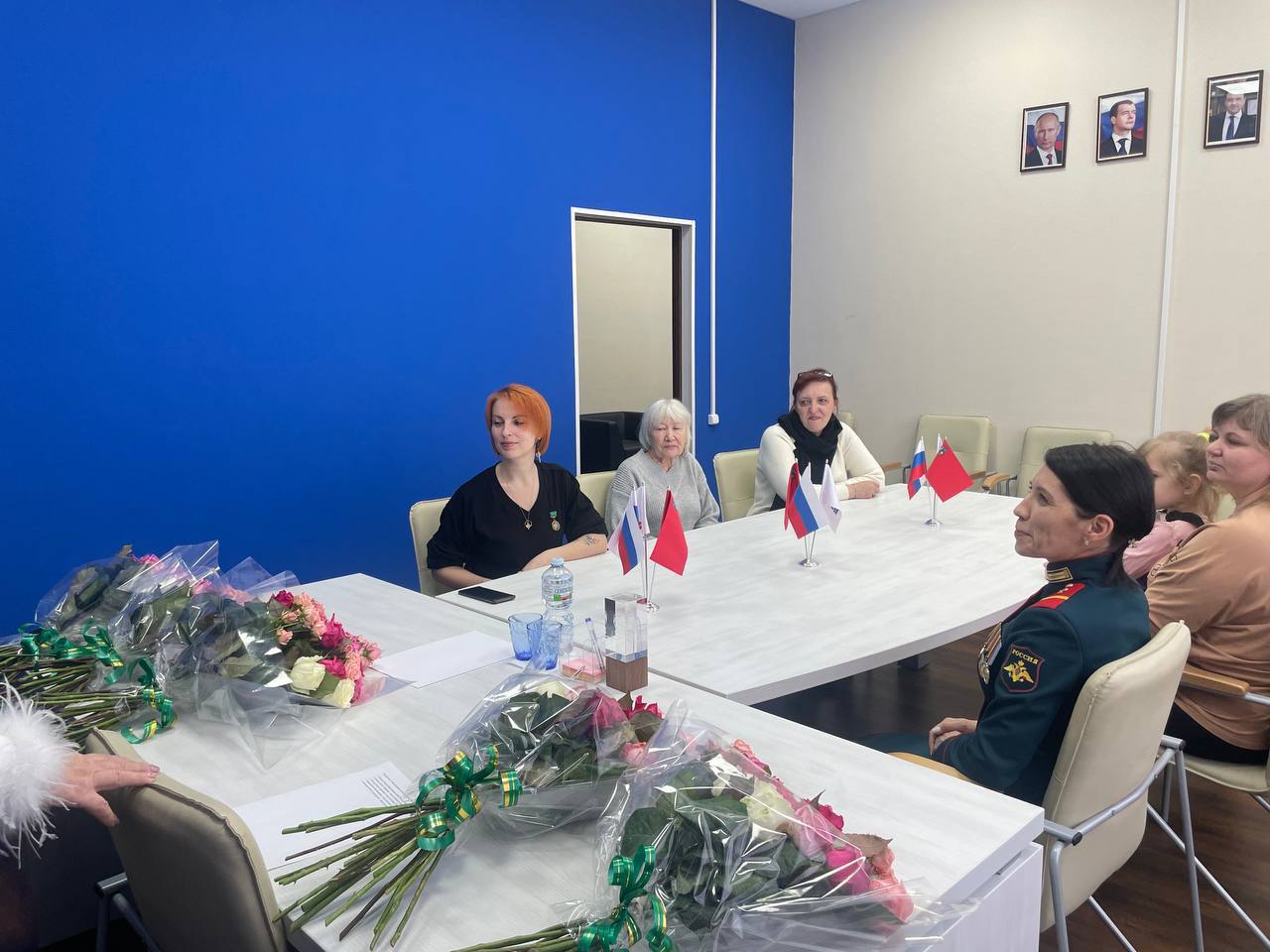 На встрече присутствовали Герой России Людмила Вячеславовна Болилая, три супруги наших защитников -участников СВО и мама нашего героя отдавшего жизнь за Родину...