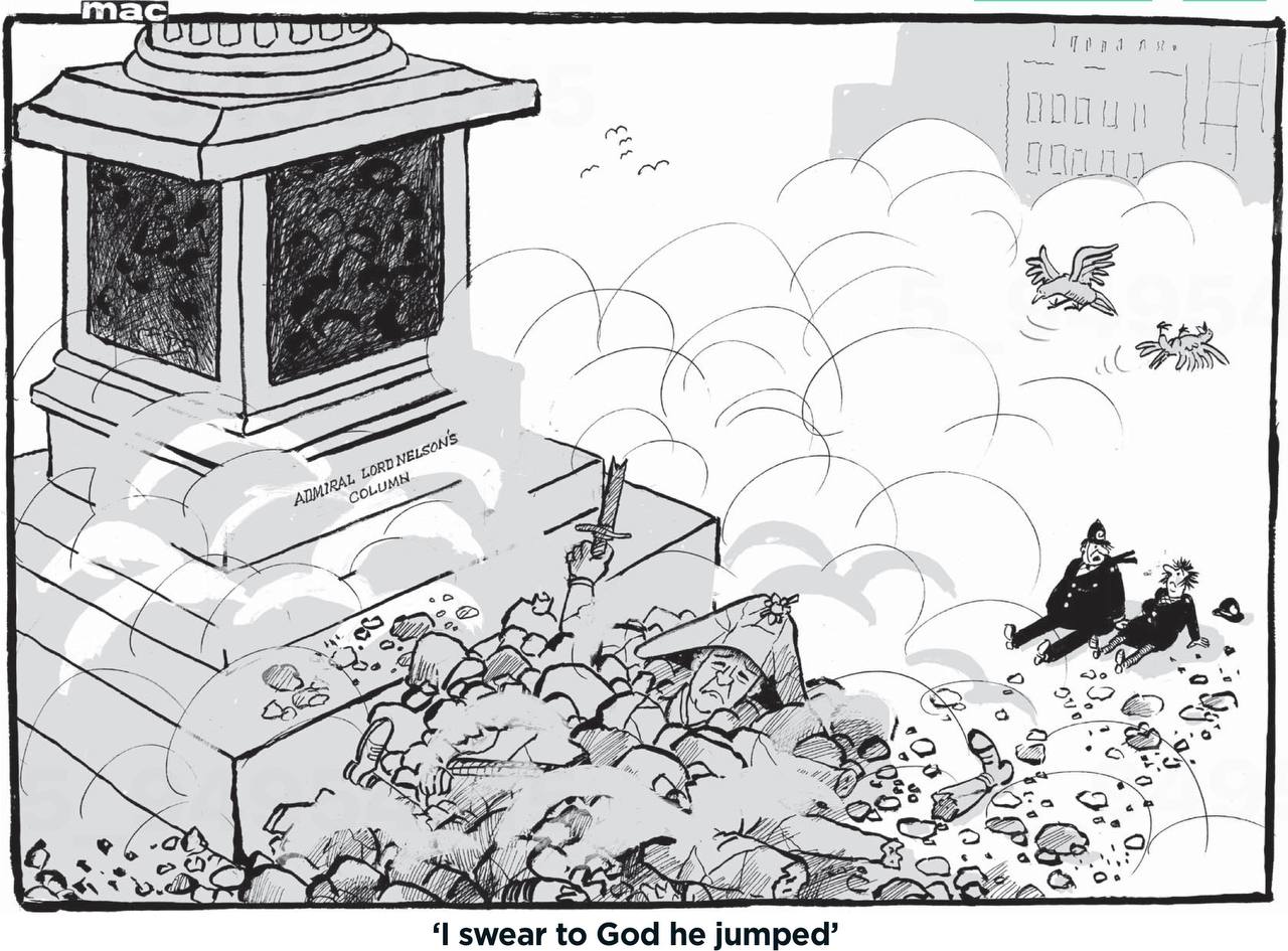 Mail on Sunday считает, что статуя легендарного адмирала Нельсона на Трафальгарской площади в Лондоне настолько не выдержала позора, что флотоводец решил просто спрыгнуть с постамента.