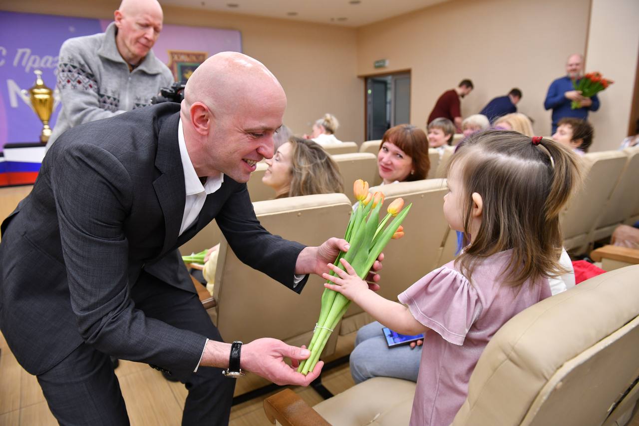 «Химки по праву славятся своими спортивными достижениями на всю страну. Вы — тренеры, методисты, администраторы — вносите неоценимый вклад в развитие нашего города как спортивной столицы региона. От всего сердца поздравляю вас с наступающим Международным женским днем! Желаю вам крепкого здоровья, неиссякаемой энергии и новых ярких побед ваших воспитанников», — обратился к виновницам торжества Валентин Герасимов.