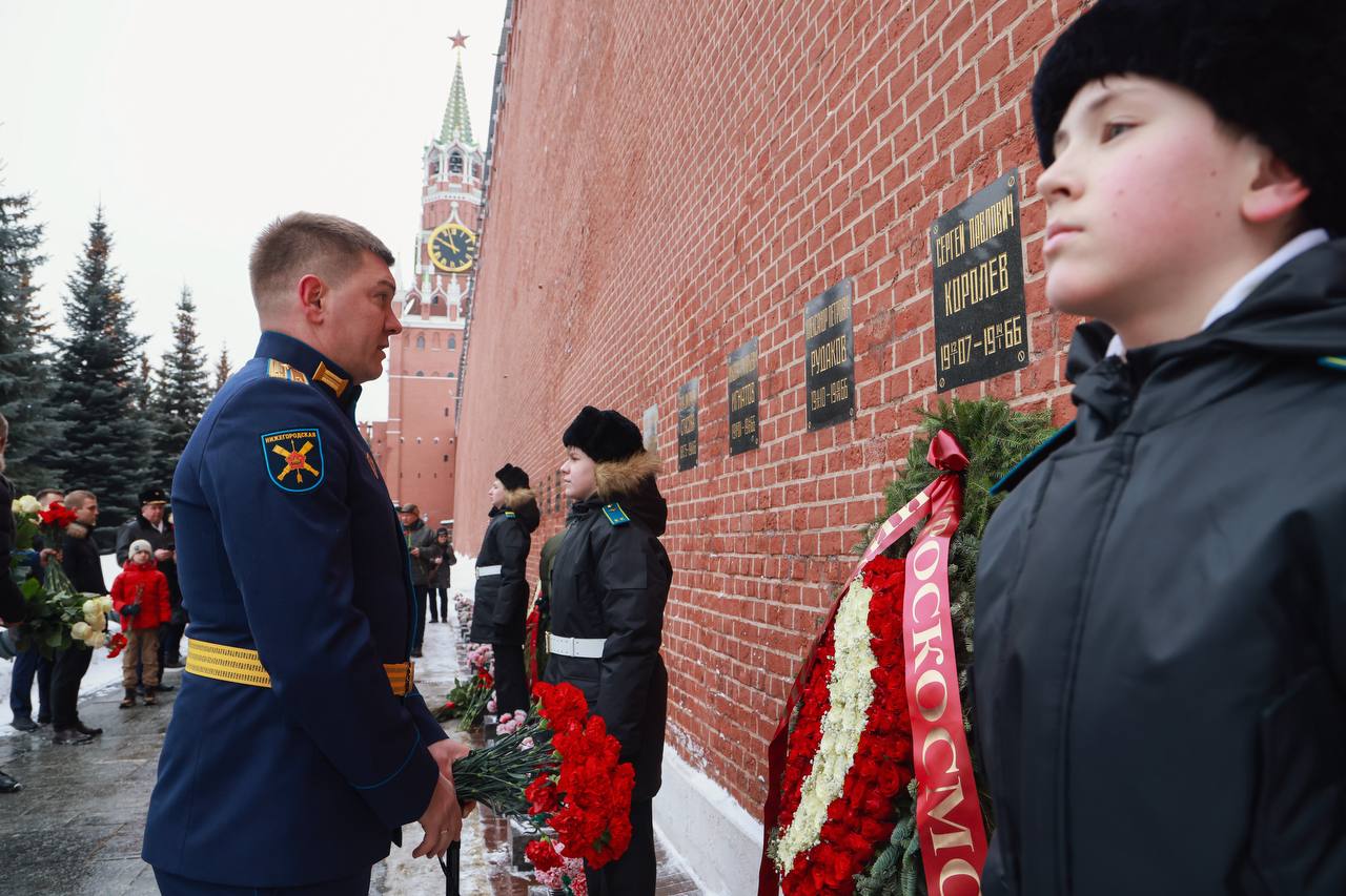 Также памятный венок и цветы были возложены у места захоронения основоположника практической космонавтики Сергея Павловича Королёва.