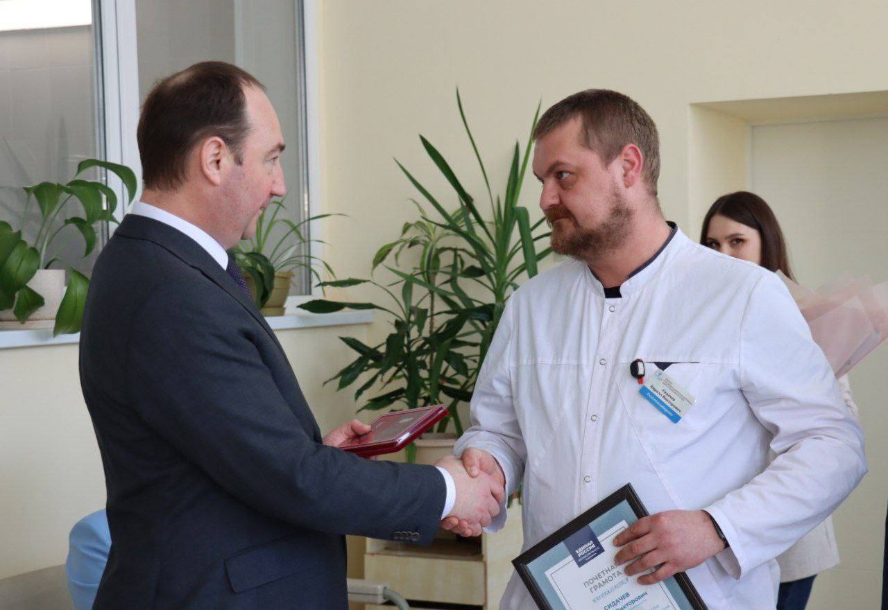Поводом для визита стала встреча с коллективом медицинского учреждения, а также с членом местной Ассоциации ветеранов специальной военной операции Кириллом Сидачевым.