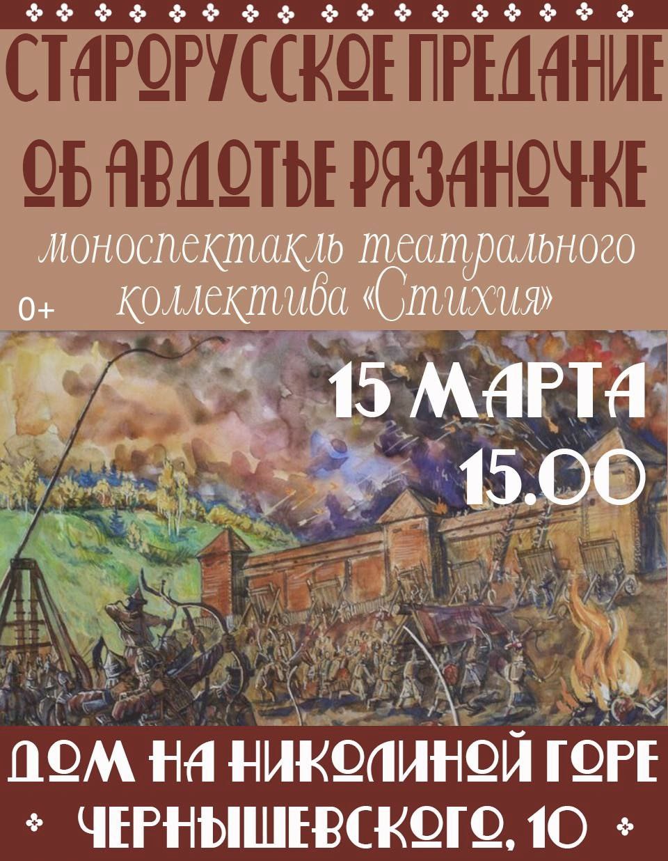 В одной древней онежской былине рассказывается о необычной судьбе простой русской женщины — Авдотьи из Рязани, которая одна смогла вызволить из татарского плена не только своих родных: мужа, брата и сына, но и всех земляков.