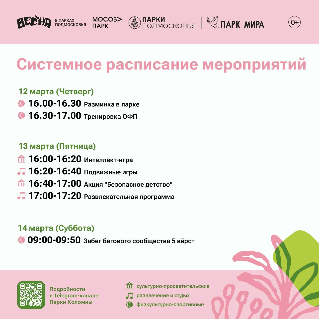 В парке Мира в Коломне в четверг пройдут разминка и тренировка по общей физической подготовке, а в субботу – традиционный забег бегового сообщества «5 верст» .