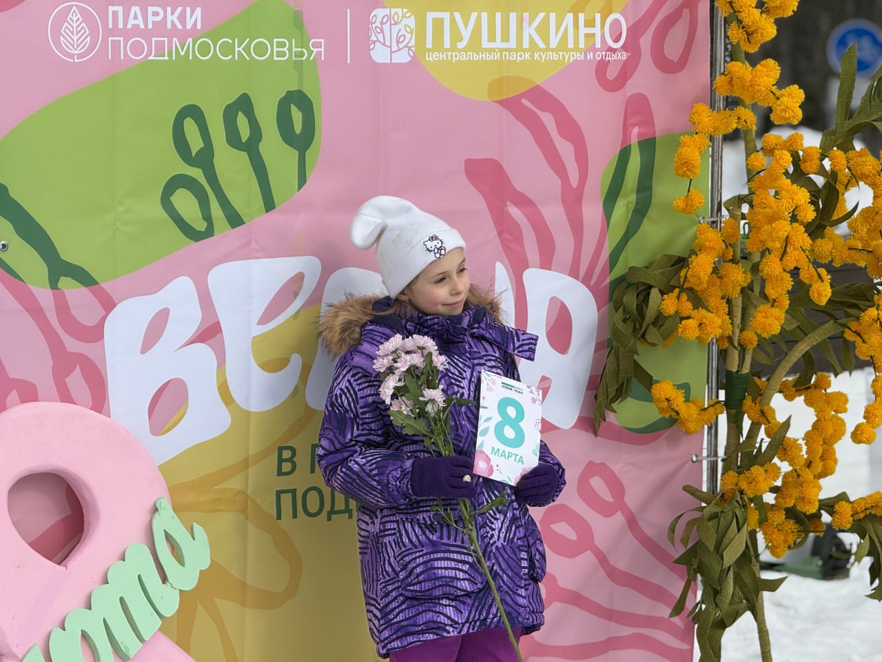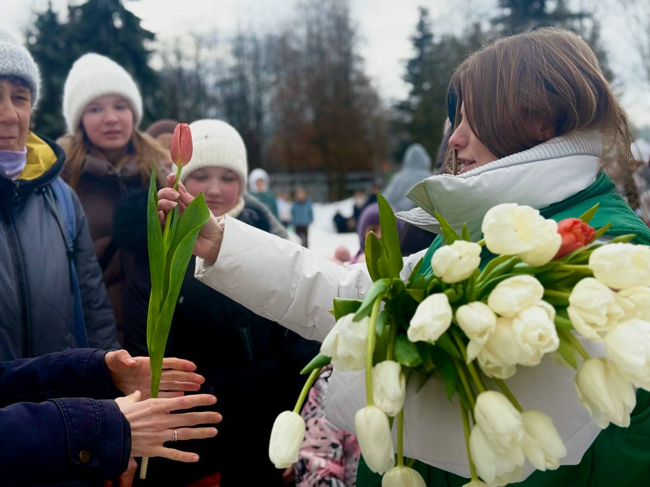Завершающим аккордом праздника стала добрая акция - всем женщинам, пришедшим в этот день в парки, дарили живые весенние цветы.