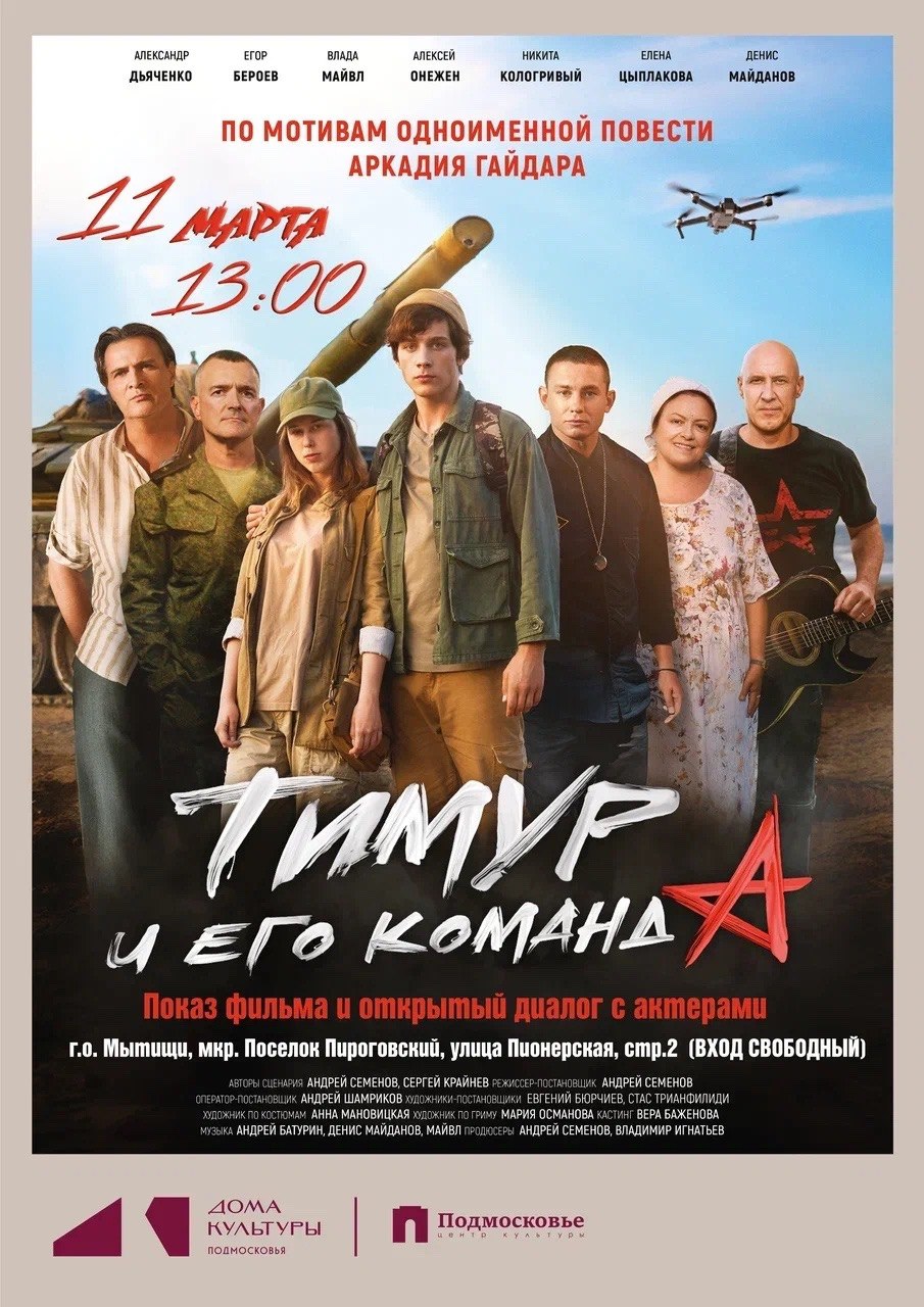 В ЦК «Подмосковье» 11 марта в 13:00 состоится бесплатный кинопоказ фильма «Тимур и его команда».