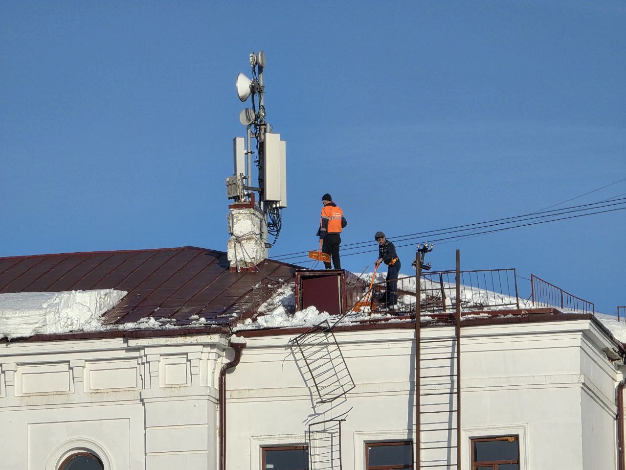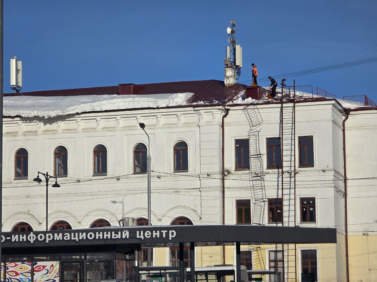 После обращения жителей рабочие оперативно расчистили кровлю здания вокзала.