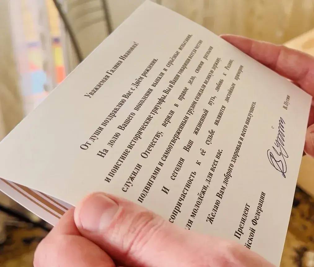 «На долю Вашего поколения выпали и серьёзные испытания, и исторические триумфы. Вы всегда честно служили Отечеству. Ваш жизненный путь — пример для молодёжи, для всех нас», — говорится в обращении президента.