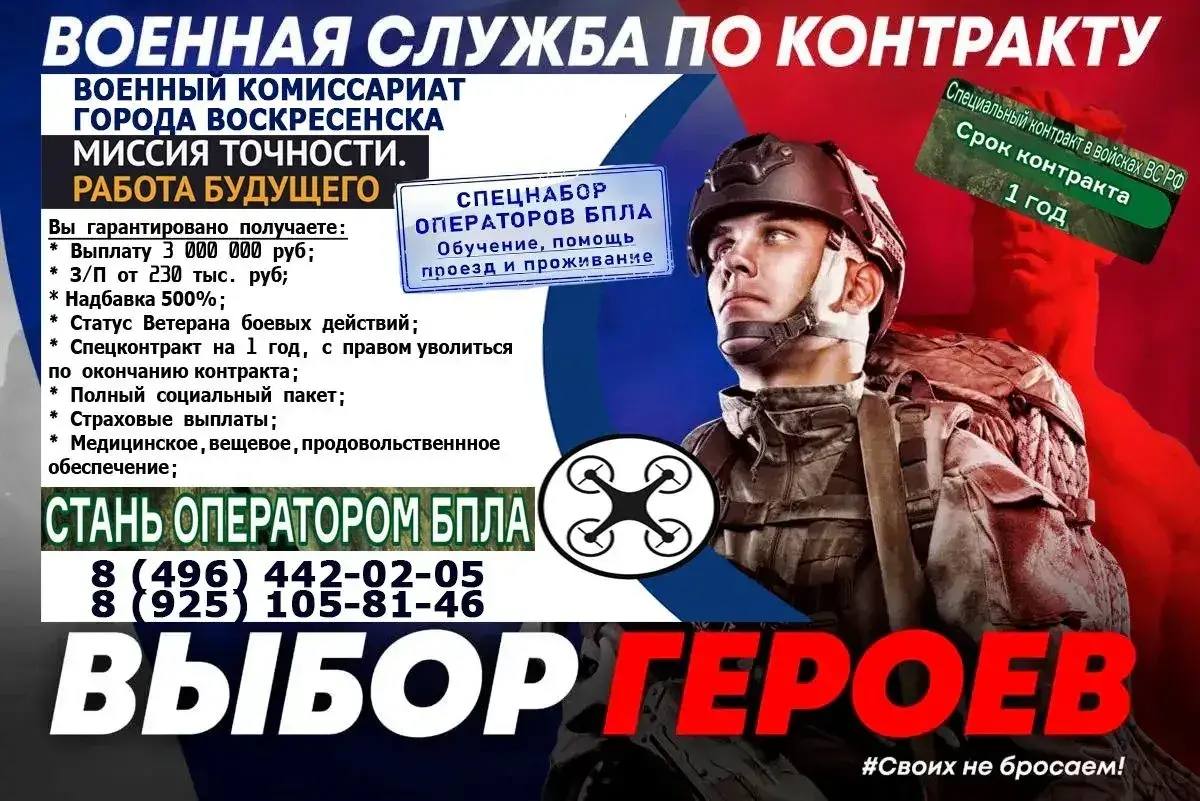 Военный комиссариат города Воскресенск проводит набор на службу в армию РФ по контракту.