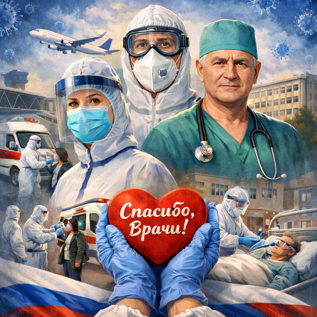 Сегодня мы вспоминаем подвиг наших медиков, которые смело сражались с вирусом, спасая жизни. В феврале 2020 года медицинские бригады начали дежурить в аэропорту, а количество коек в инфекционном отделении увеличили до 90.