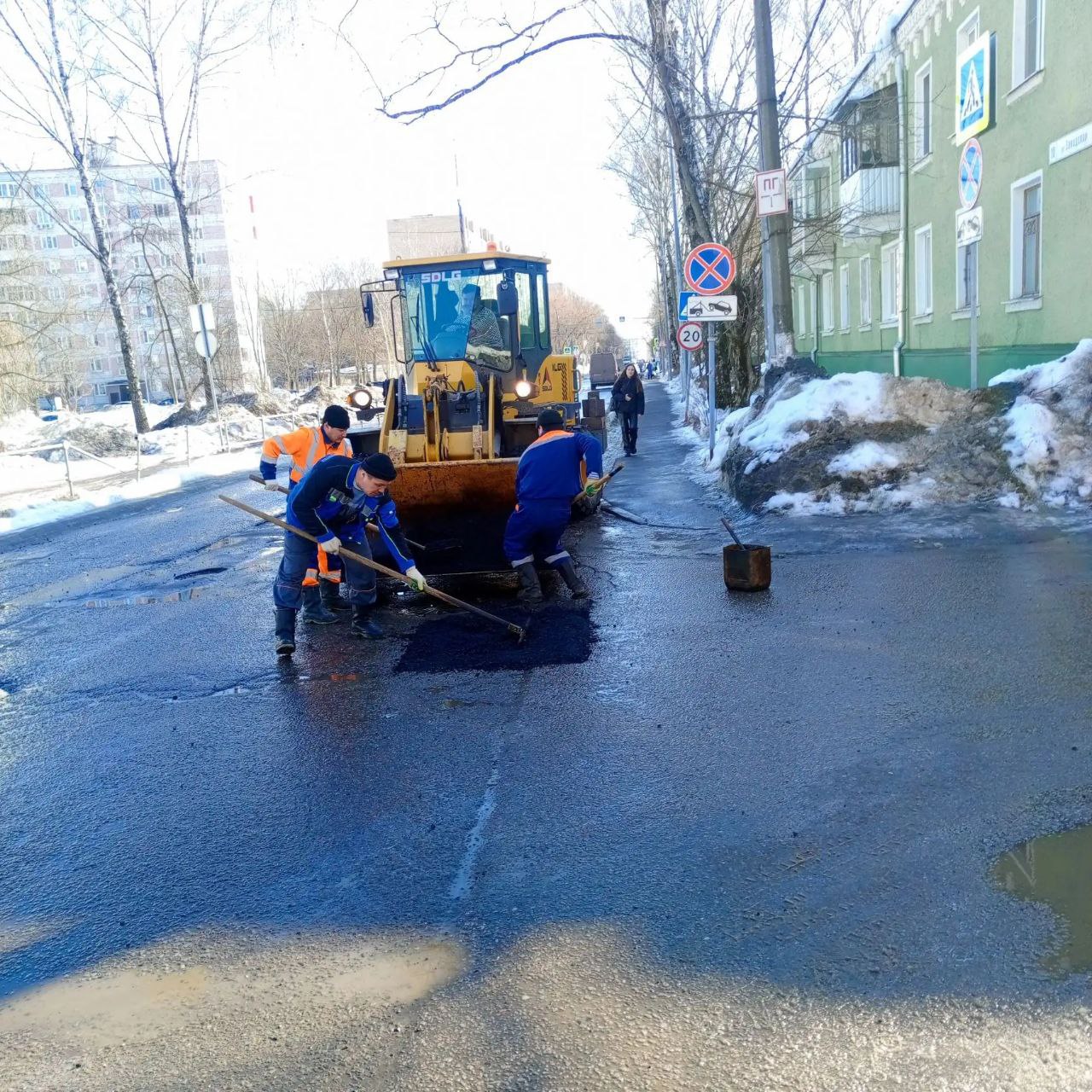 Работы уже проведены на улицах Спортивная, Циолковского, Ак. Лаврентьева.Сегодня, 11 марта, ямы заделывают на ул. Заводская.