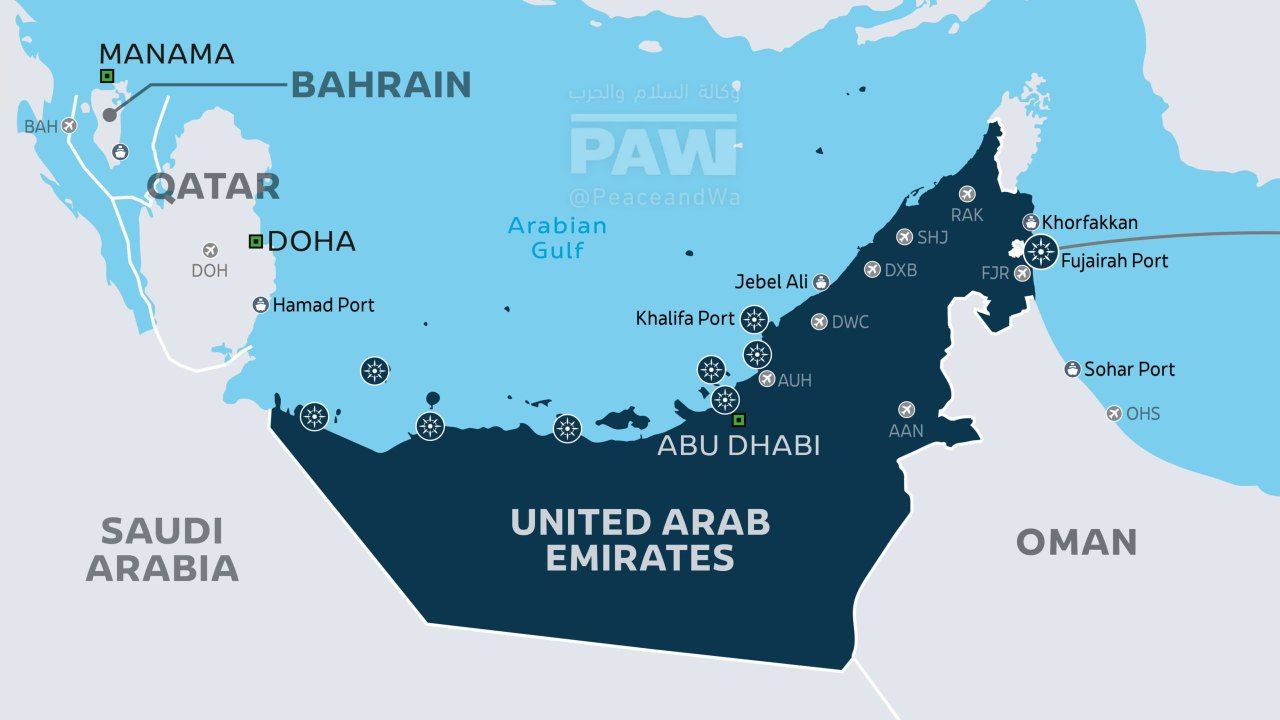 В числе затронутых оказались следующие морские порты: Джебель Али и Рашид в Дубае, Халифа в Абу-Даби в ОАЭ, а также Халифа бин Салман на территории Королевства Бахрейн.