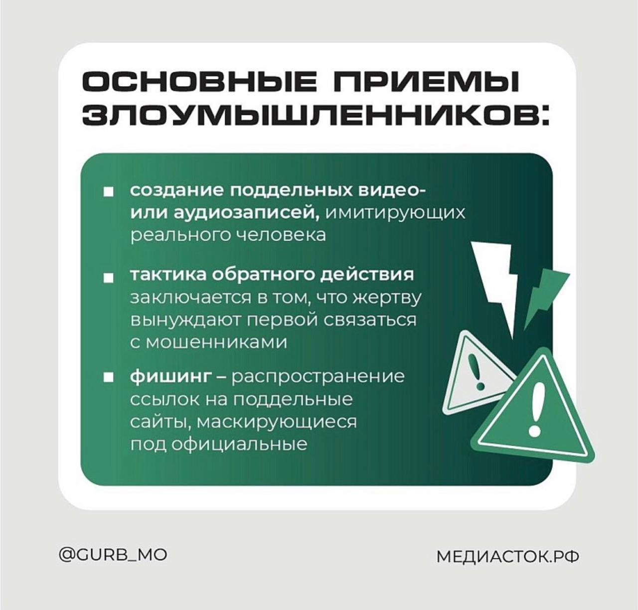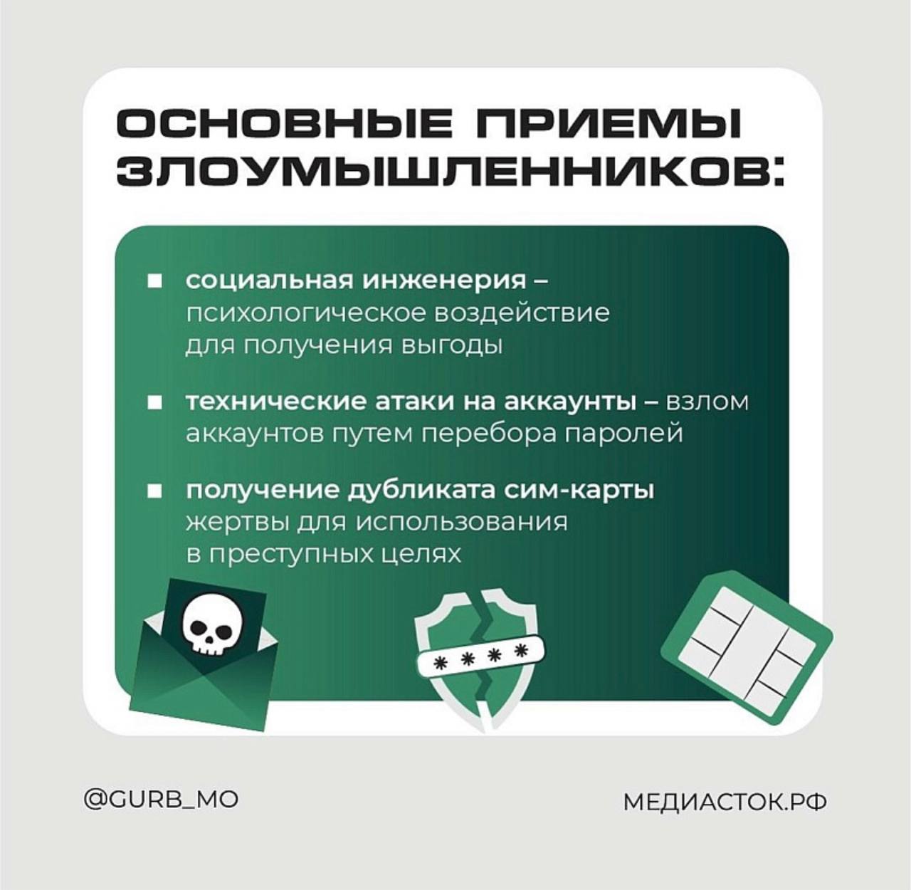 В карточках Главного управления региональной безопасности Московской области описаны самые популярные методы, которыми они пользуются.