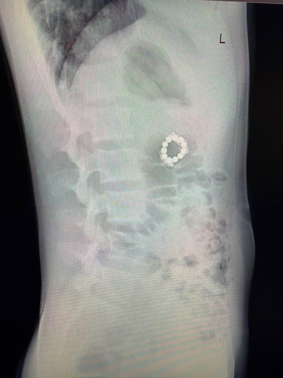 Позвоночник оказался в порядке, но на снимке заметили инородные предметы в желудочно-кишечном тракте. Выяснилось, что это магниты.