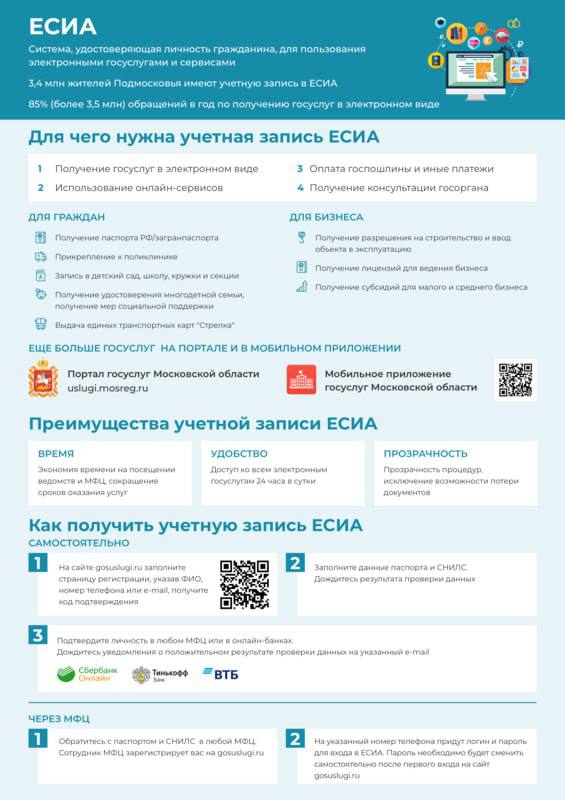 ЕСИА – это система, удостоверяющая личность гражданина, для пользования электронными госуслугами и сервисами. Учетная запись, которую жители Подмосковья могут получить при регистрации в ЕСИА, дает доступ к региональным и федеральным порталам и интернет-ресурсам.