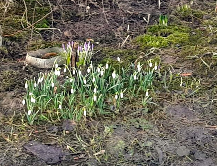 Но, несмотря на затянувшуюся «вахту» новогодней красавицы и ещё нерастаявшие сугробы, весна упорно отвоёвывает своё. Напротив ёлки, в палисаднике, расцветают подснежники. И уже именно они привлекают внимание и вызывают восхищение прохожих. Потому что всему своё время.