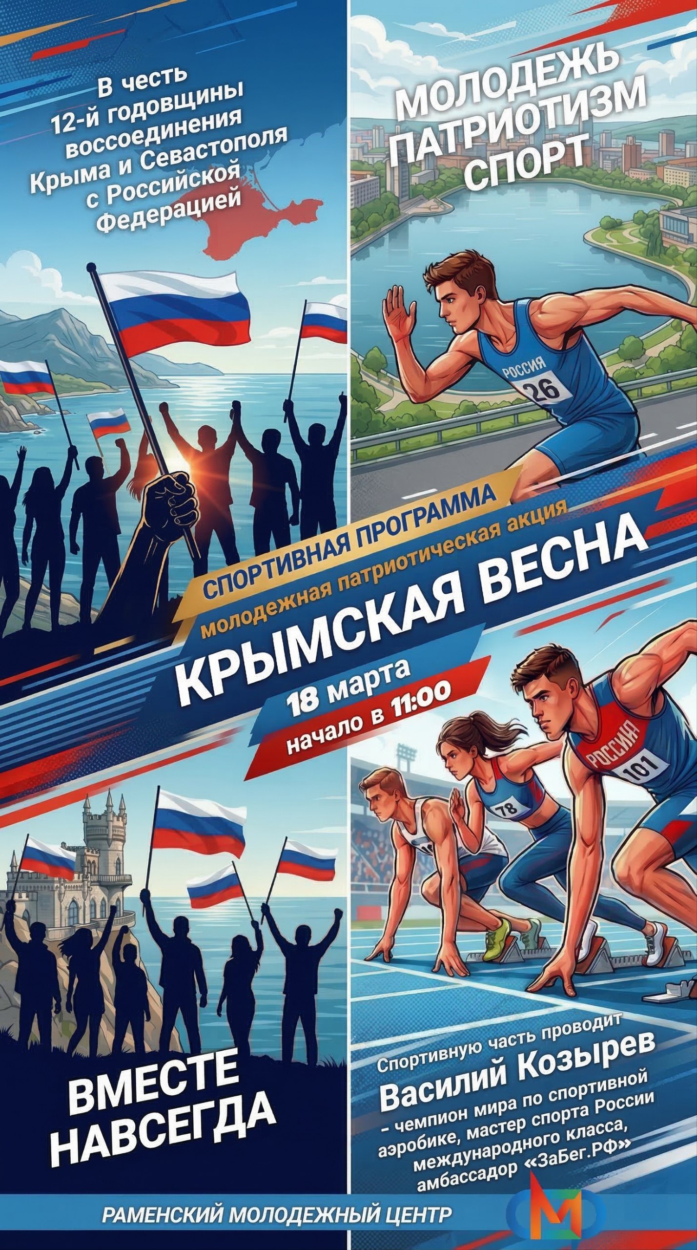 Раменский молодежный центр приглашает всех стать частью важного события, посвященного 12-й годовщине воссоединения Крыма и Севастополя с Россией.