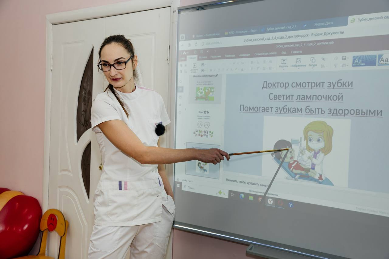Доктора Офелия Авакян и Ирина Володина рассказывают детям о важности бережного отношения к зубам, а также знакомят их с основами профессии стоматолога.