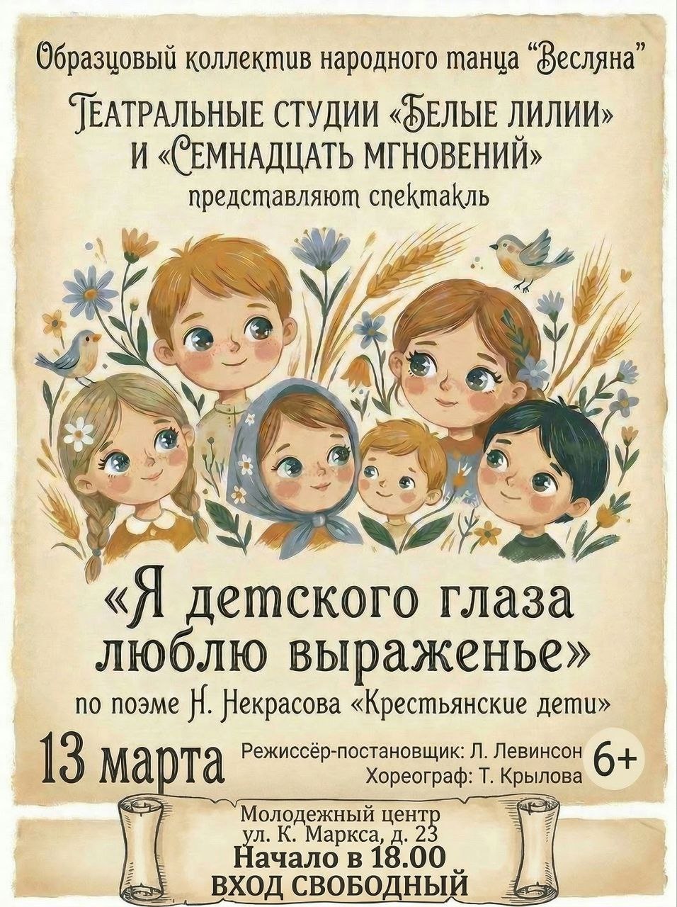 Сегодня вечером в Молодежном центре состоится спектакль «Я детского глаза люблю выраженье».