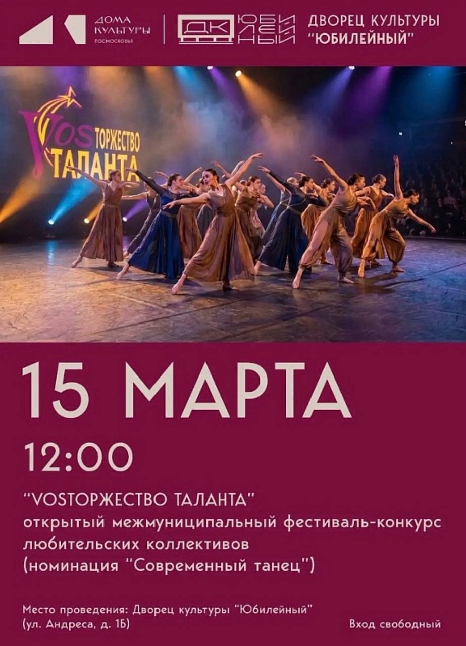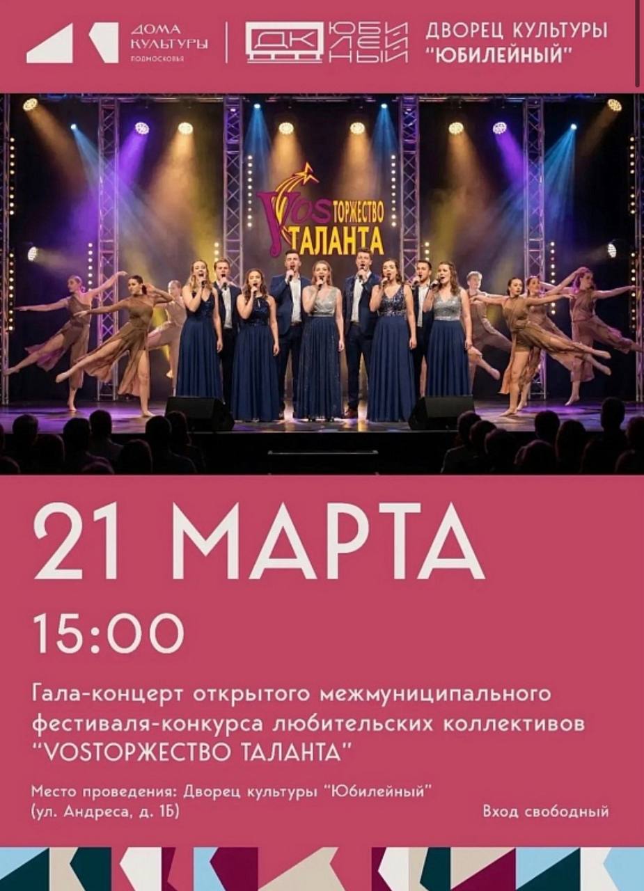 Гала-концерт Открытого межмуниципального фестиваля-конкурса любительских коллективов «VOSторжество таланта» состоится во Дворце культуры «Юбилейный» 21 марта в 15:00.