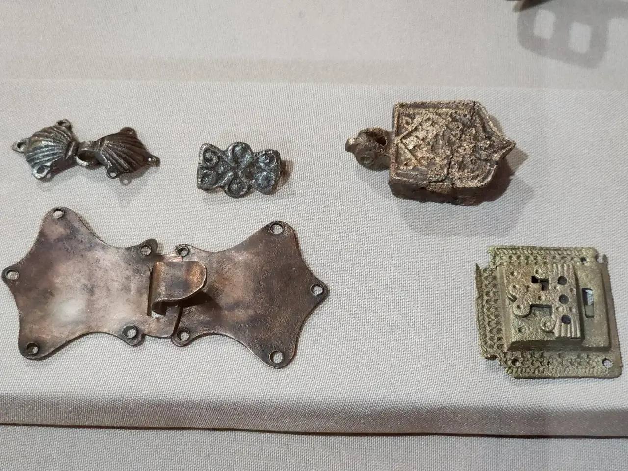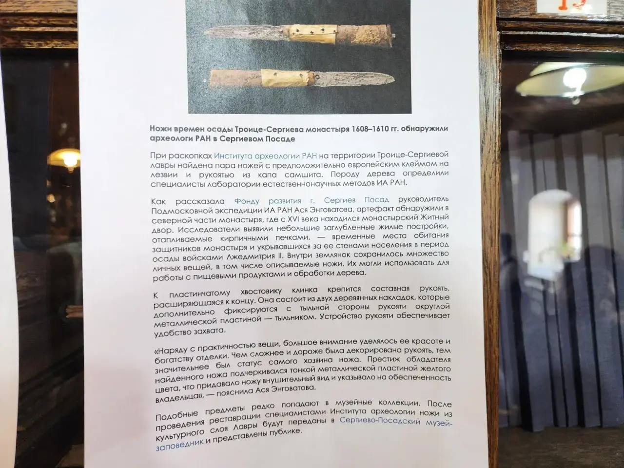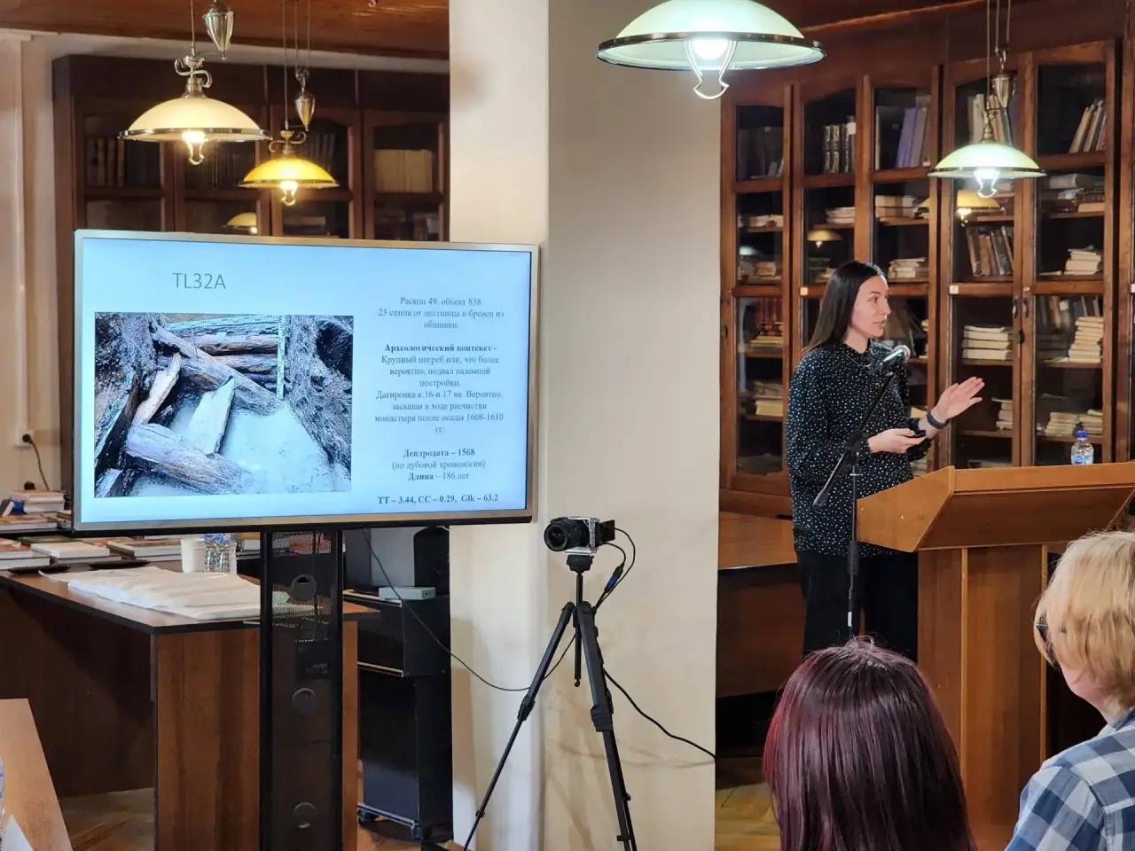 В рамках круглого стола была организована мини-экспозиция археологических находок. Среди представленных предметов — ножи, украшения, а также берестяной короб, который мог принадлежать одному из защитников монастыря.