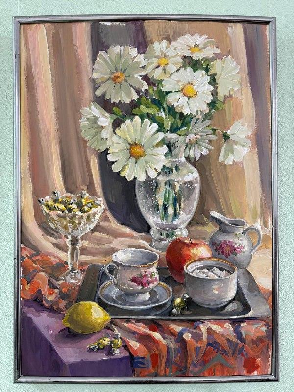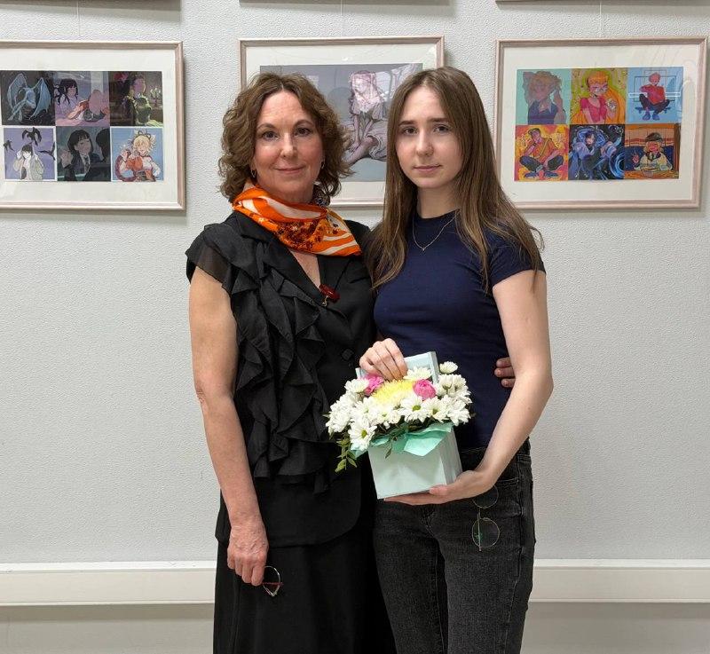Экспозиция выстроена на интересном контрасте. С одной стороны разместились классические учебные работы по живописи и рисунку, с другой – яркие цифровые персонажи и векторная графика. Посетители долго не отпускали художницу, расспрашивая о тонкостях работы и вдохновении.