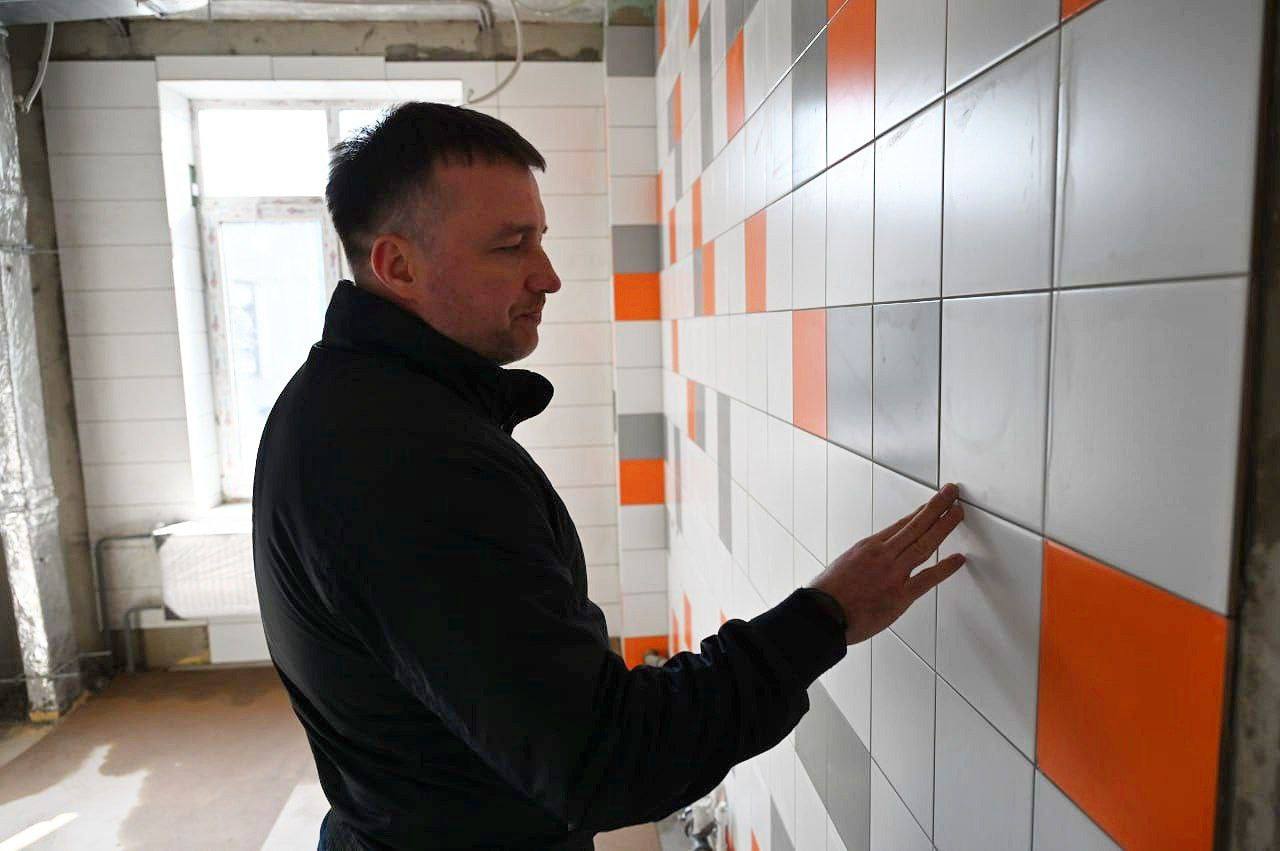Работы идут комплексно: обновляют инженерные системы, выполняют внутреннюю отделку помещений, укладывают плитку и устанавливают двери. Полностью реконструирован пищеблок, предусмотрены музыкальный и спортивный залы, прачечная и медицинский кабинет. После открытия сад сможет принять 289 детей.