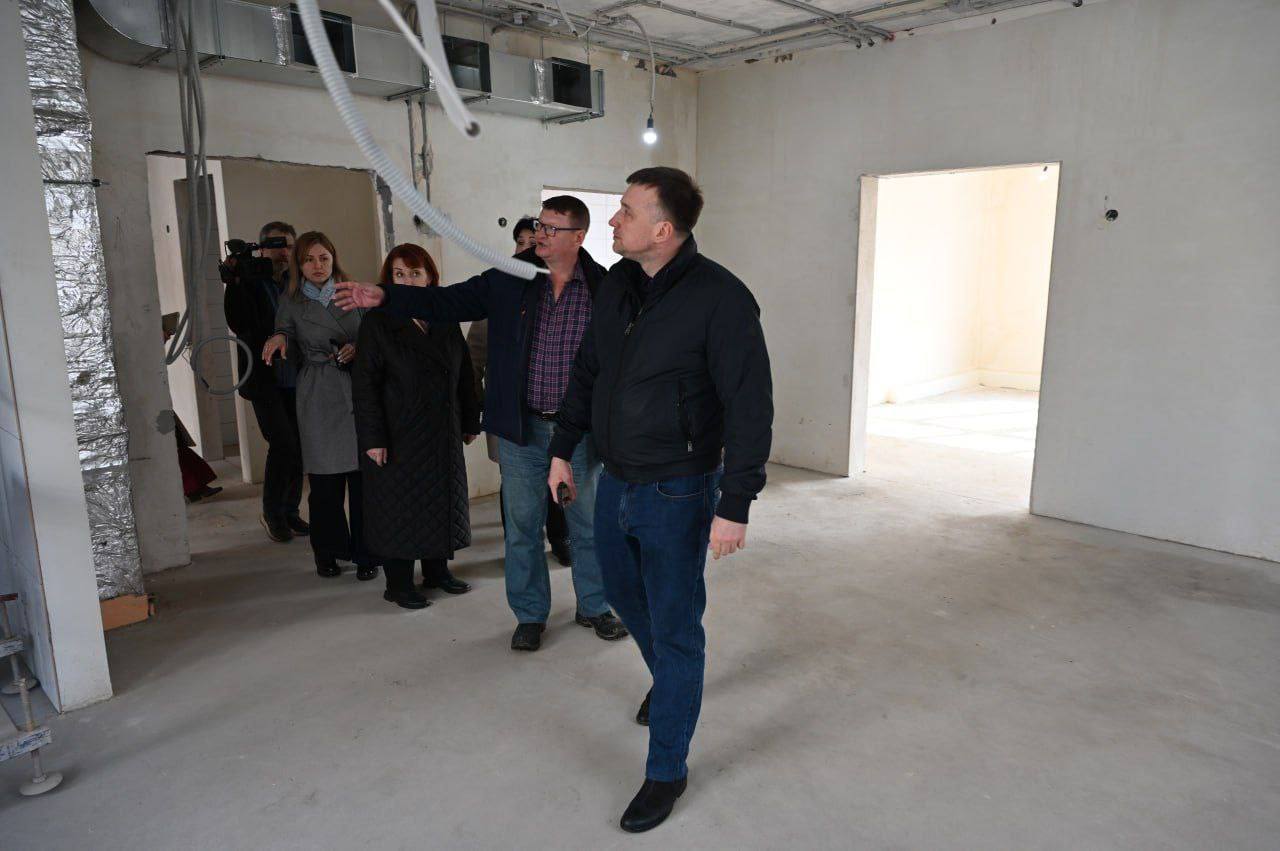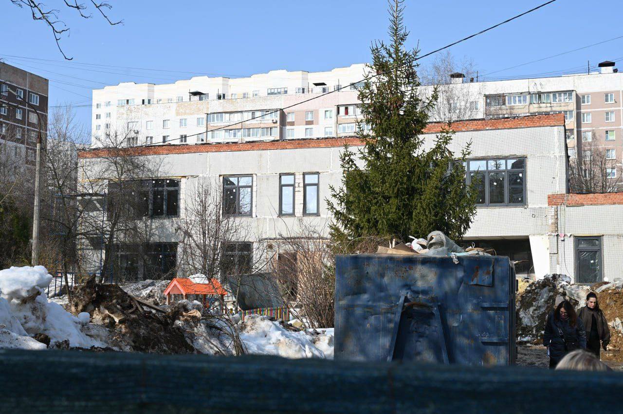 Здесь уже завершены кровельные работы и замена окон. Сейчас ведутся внутренняя отделка, монтаж систем отопления, тёплых полов и сантехники. После ремонта учреждение сможет принять 180 воспитанников.