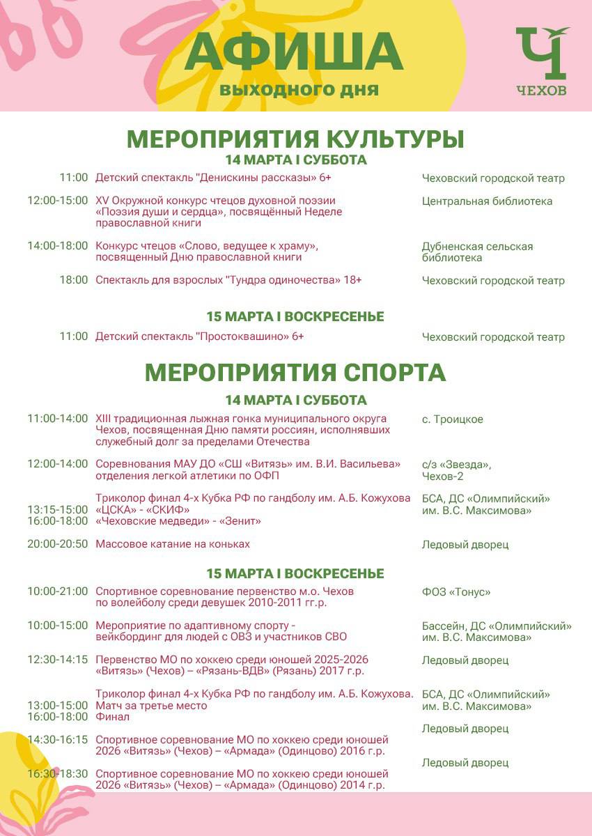 В эти праздничные выходные наши культурные и спортивные учреждения подготовили для вас мероприятия, которые пройдут на различных площадках округа.