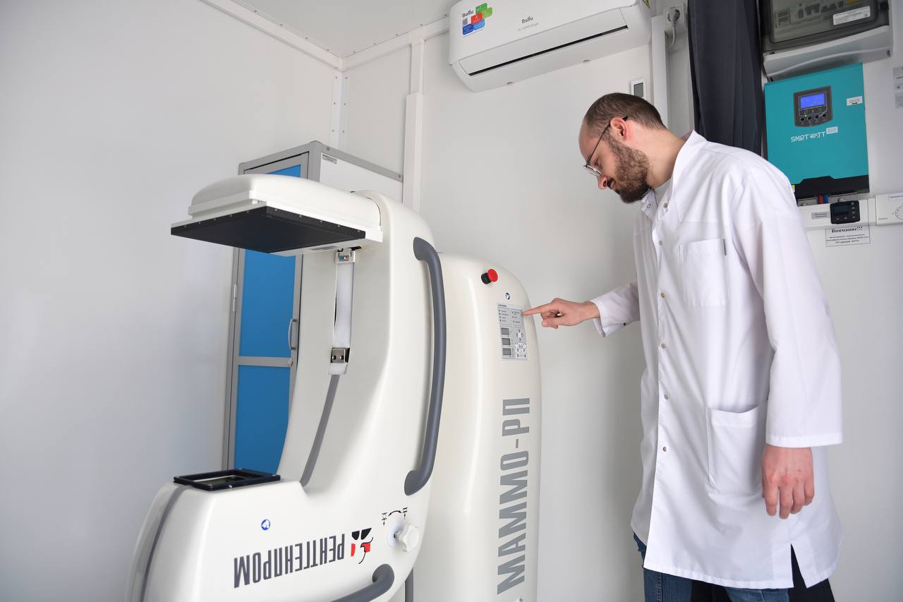 Мобильный кабинет оснащён современным цифровым маммографом, рабочим местом для специалиста и системой обработки изображений, что позволяет проводить качественную диагностику даже в самых удалённых уголках округа.
