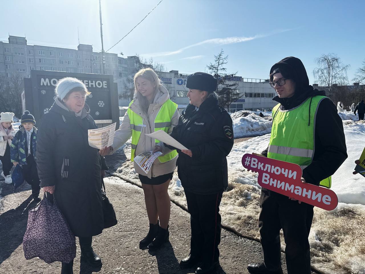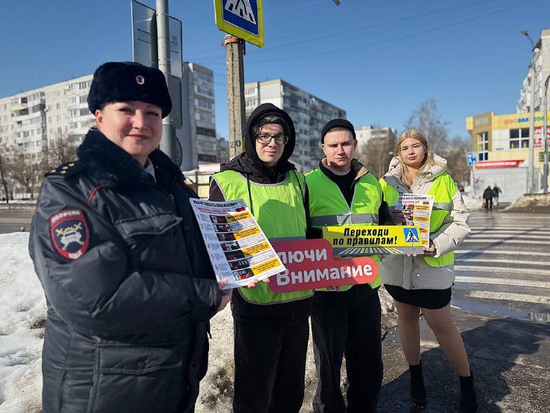 Пешеходам напомнили о правилах перехода проезжей части и скрытых ловушках на дороге, а также раздали тематические памятки.