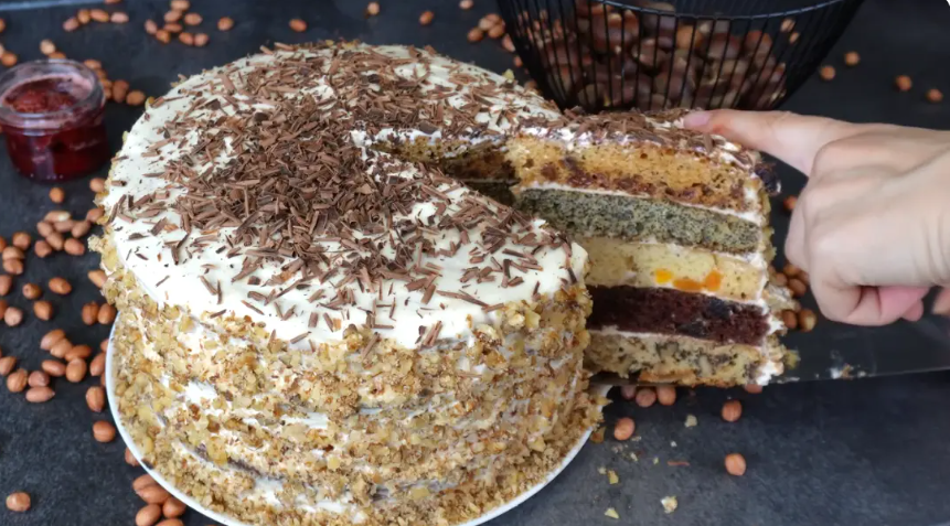 Для крема стоит объединить сметану с сахаром, чтобы получить воздушную массу. Каждый корж пропитывается сладкой смесью, а затем обмазывается кремом. После того как все слои собраны, торту необходимо время на пропитку — лучше оставить его в холодильнике на ночь.