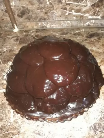 Обмазать торт оставшимся кремом, имитируя панцирь черепахи, и тщательно покрыть шоколадной глазурью, для которой растопить шоколад с маслом на водяной бане. Украсить торт орехами или кокосовой стружкой.