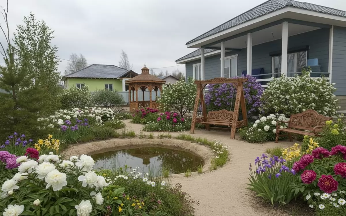 Искусственный интеллект способен не только скопировать общепринятые формы, такие как хай-тек и минимализм, но и уловить ностальгические нотки, характерные для традиционного русского сада. Этот стиль стал настоящим трендом 2026 года и позволяет каждому владельцу дачного участка увидеть его в новом свете.