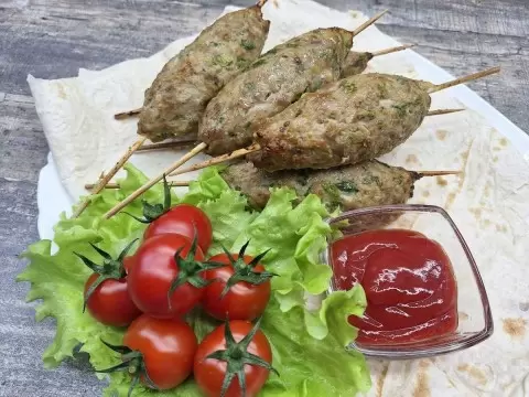Сыр нарезается на бруски размером около 6–8 см в длину и 1–1,5 см в ширину. Каждый брусок аккуратно нанизывается на шпажку. Далее, небольшую порцию фарша формируют в лепёшку, оборачивают вокруг сыра, придавая форму шашлычка. Важно, чтобы сыр не выглядывал, чтобы он не вытек во время запекания.
