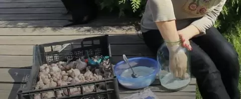 Перед хранением чеснок очищают от лишней земли и сортируют, отбраковывая все поврежденные или гнилые луковицы. При этом оставляют небольшие хвостики на корнях для защиты. Чеснок можно хранить различными способами: в плетенках, ящиках или даже в банках, пересыпая его мукой или песком для лучшей защиты от гнили.