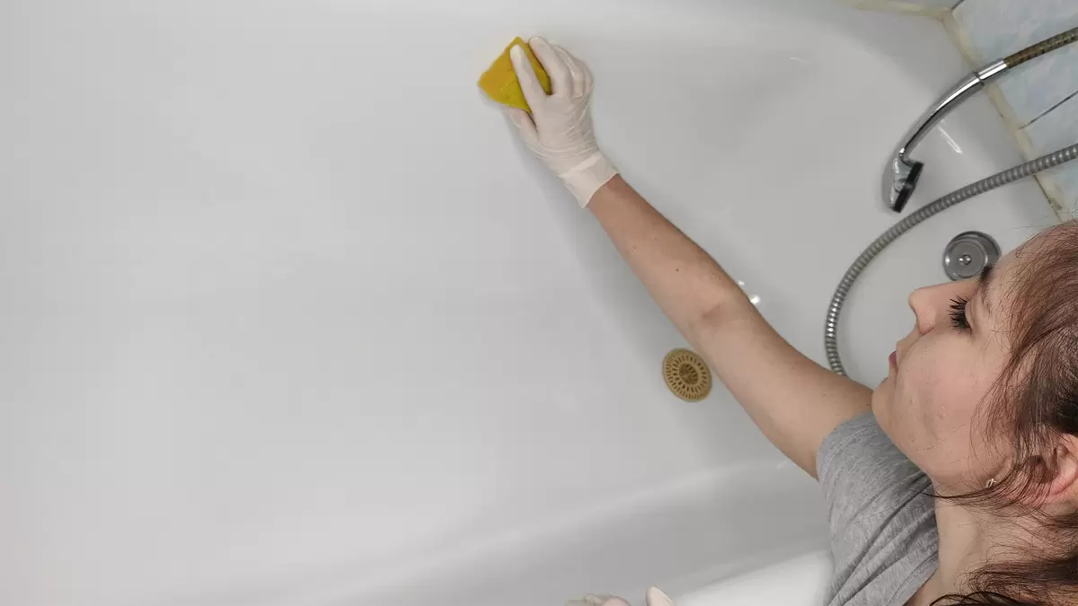 Получившимся раствором нужно равномерно облить ванну, используя распылитель. Рекомендуется открывать окно или включить вытяжной вентилятор для вентиляции. После нанесения раствора, он должен оставить на поверхности минимум на 5 минут для максимального эффекта. В местах с более стойкими загрязнениями стоит прикрепить пропитанные полотенца к грязным участкам, чтобы чистящее средство контактировало с ними дольше и обеспечивало еще более глубокую очистку.