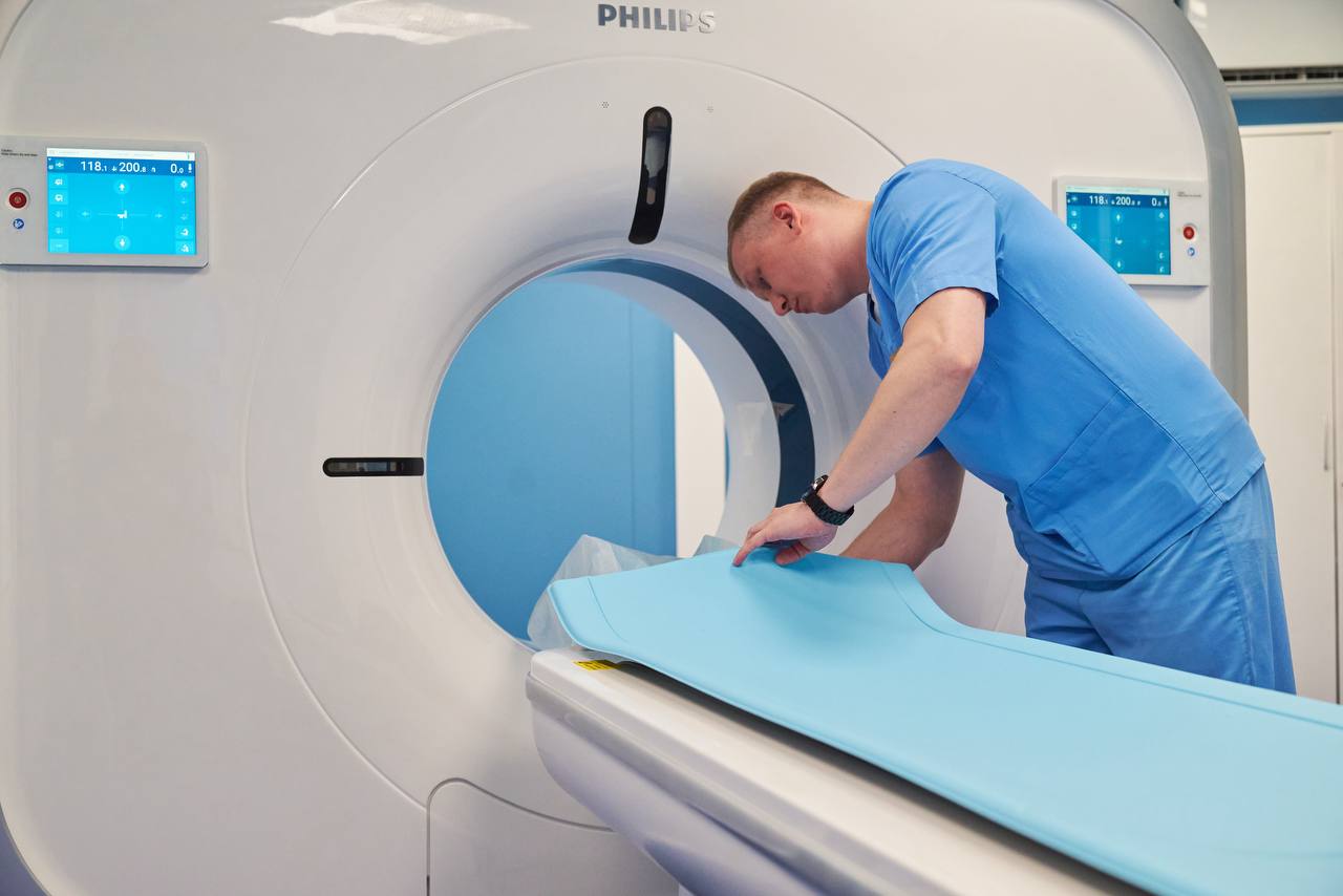 Аппарат позволяет проводить более точные исследования, в том числе КТ-перфузию — оценку кровотока в сосудах головного мозга, что важно для своевременного выявления инсульта.