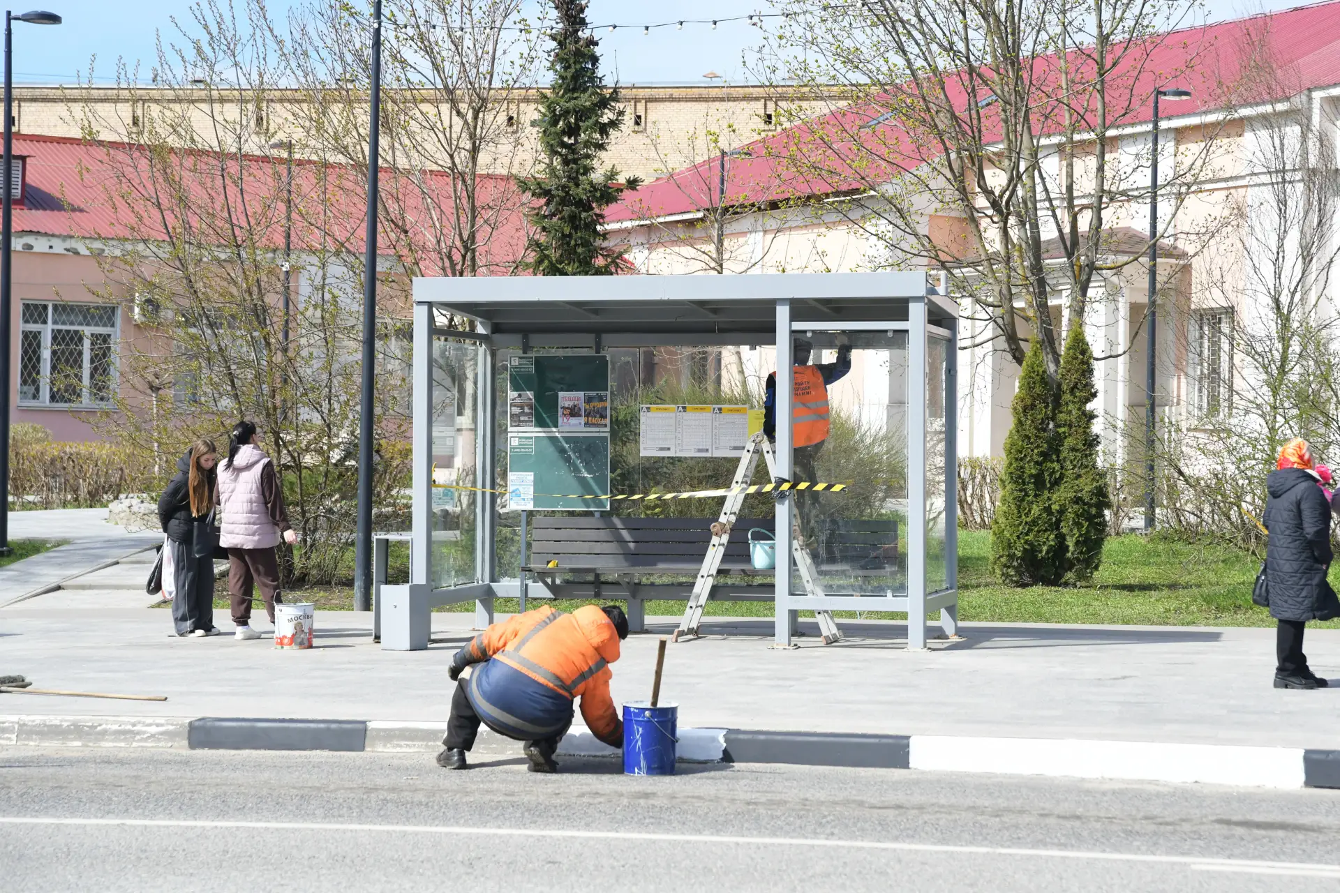 — окраска бордюров и остановочных павильонов
