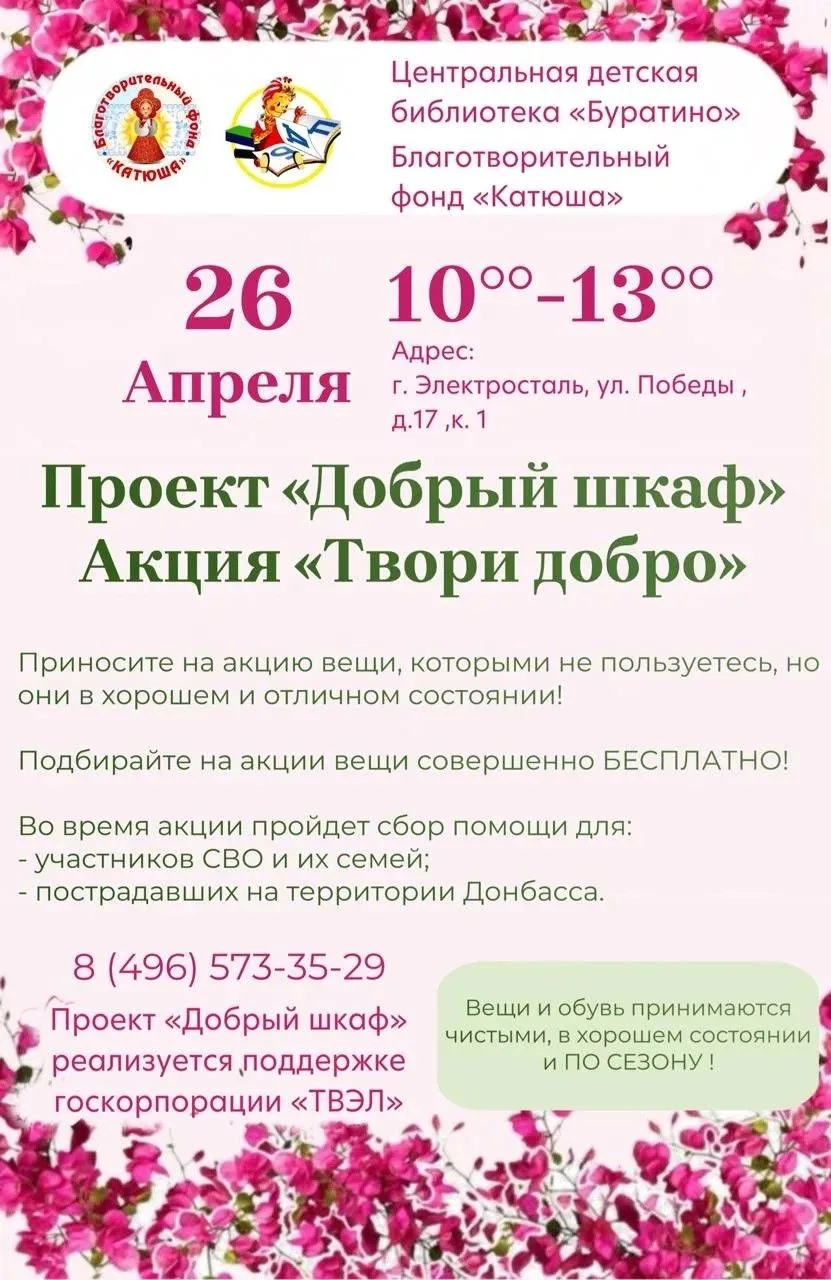 26 апреля пройдет очередная благотворительная акция «Твори добро».