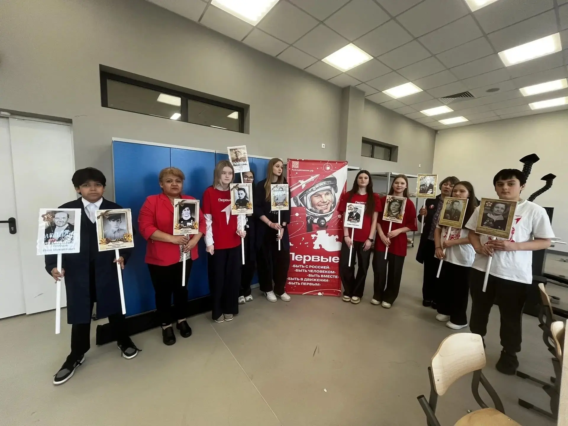 В образовательном учреждении села Верзилово стартовал цикл мероприятий «Памяти ветеранов», организованный «Движением Первых». Участниками первых мастер-классов стали активисты Движения и местные жители. За несколько часов совместной работы было изготовлено 15 штендеров с портретами участников Великой Отечественной войны.